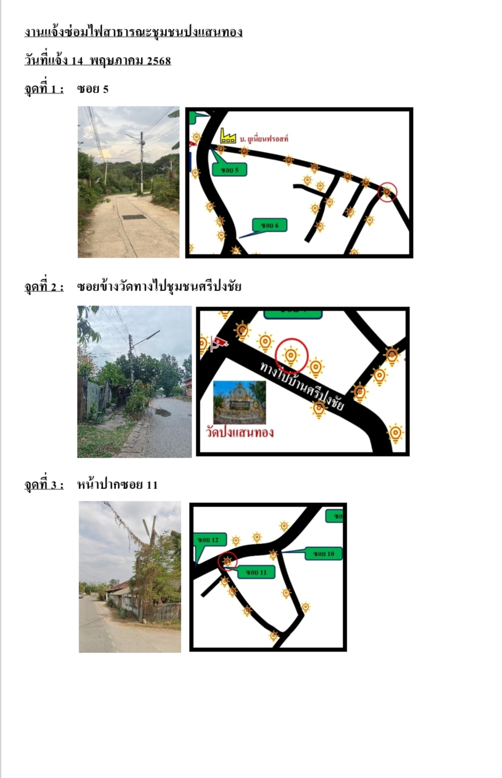 รายละเอียดของเรื่อง : ขอความอนุเคราะห์ซ่อมไฟกิ่งสาธารณะที่ชำรุดในชุมชนปงแสนทอง รายละเอียดจุดซ่อมตามเอกสารไฟล์แนบ |