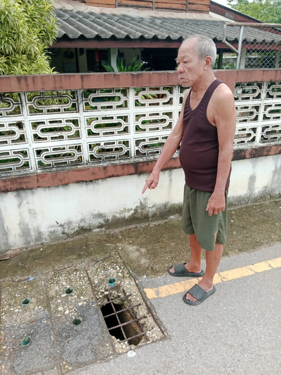 | บริเวณสถานที่ : ฝาท่อระบายชำรุด บริเวณใกล้ตลาดสดศาลาดอนคะ |