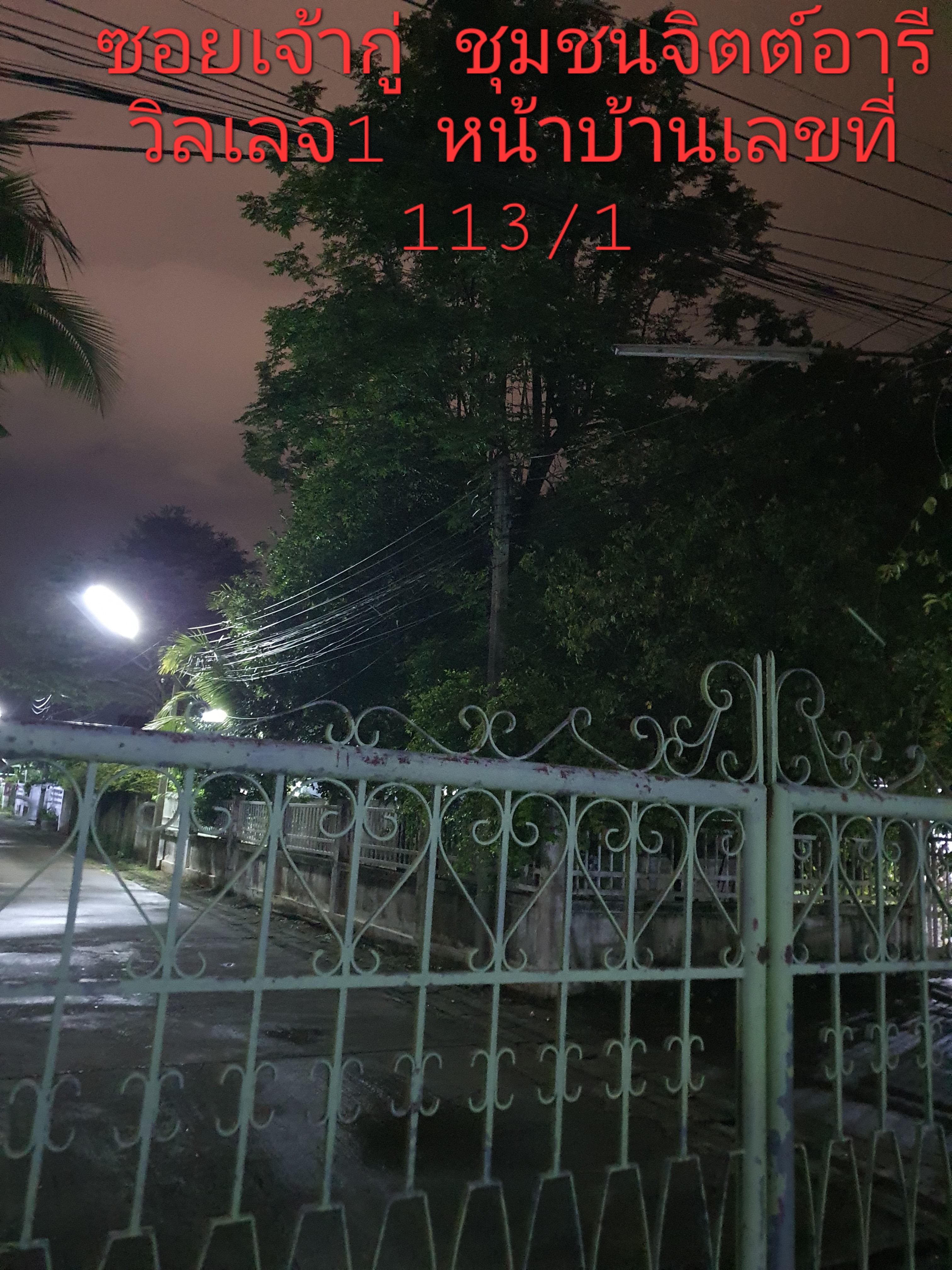 | บริเวณสถานที่ : ซอยเจ้ากู่ ชุมชนจิตต์อารีวิลเลจ1 บริเวณเสาไฟฟ้า