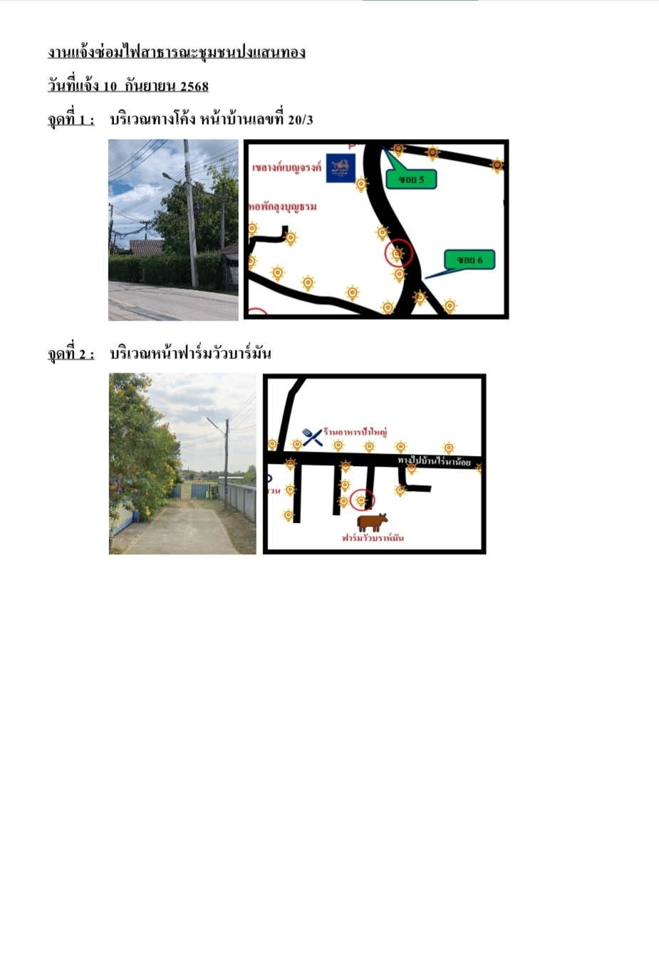 รายละเอียดของเรื่อง : ขอความอนุเคราะห์ซ่อมไฟกิ่งสาธารณะที่ชำรุดในชุมชนปงแสนทอง รายละเอียดจุดซ่อมตามเอกสารไฟล์แนบ |