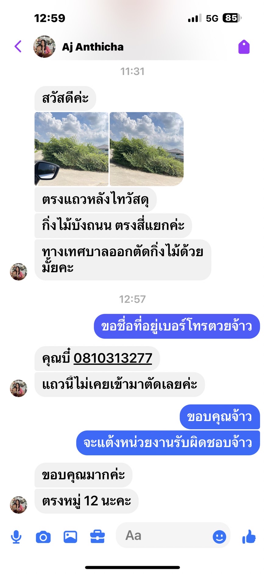 รายละเอียดของเรื่อง : ตรงแถวหลังไทวัสดุ กิ่งไม้บังถนนตรงสี่แยก |