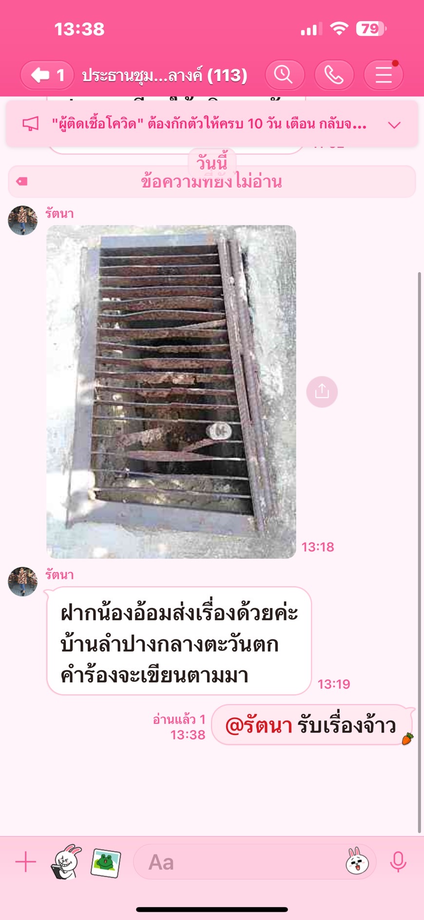 รายละเอียดของเรื่อง : ขออนุเคราะห์ซ่อมแซมบ่อพัก/ฝาท่อระบายน้ำชำรุด/สูญหาย |