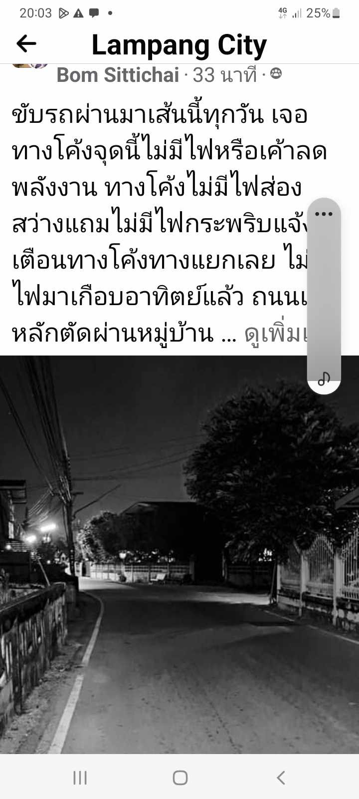 รายละเอียดของเรื่อง : ไฟฟ้าตรงจุดนี้ ดับบ่อยมาก อาจจะเนื่องจากอุปกรณ์เสื่อมสภาพ และขอติดให้มีไฟกระพริบ เตือนว่าอันตราย ขอเปลี่ยนเป็นเสาแบบโคมไฟตรงจุดนี้ เพื่อความสว่าง เป็นทางโค้ง รถสัญจรเยอะ เพื่อความปลอดภัย ตรงจุดนี้จะเกิดอุบัติเหตุบ่อยมาก |