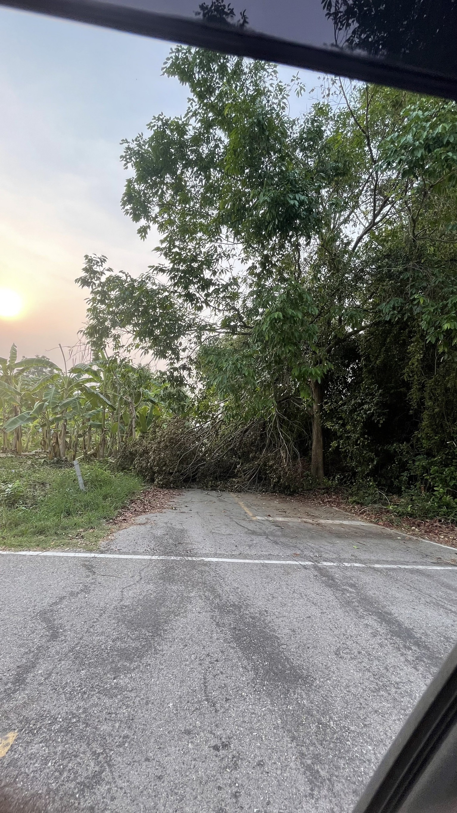 รายละเอียดของเรื่อง : เนื่องจากวันที่ 12 เมษายน มีพายุฝน จึงทำให้ต้นไม้ล้มทับถนน |
