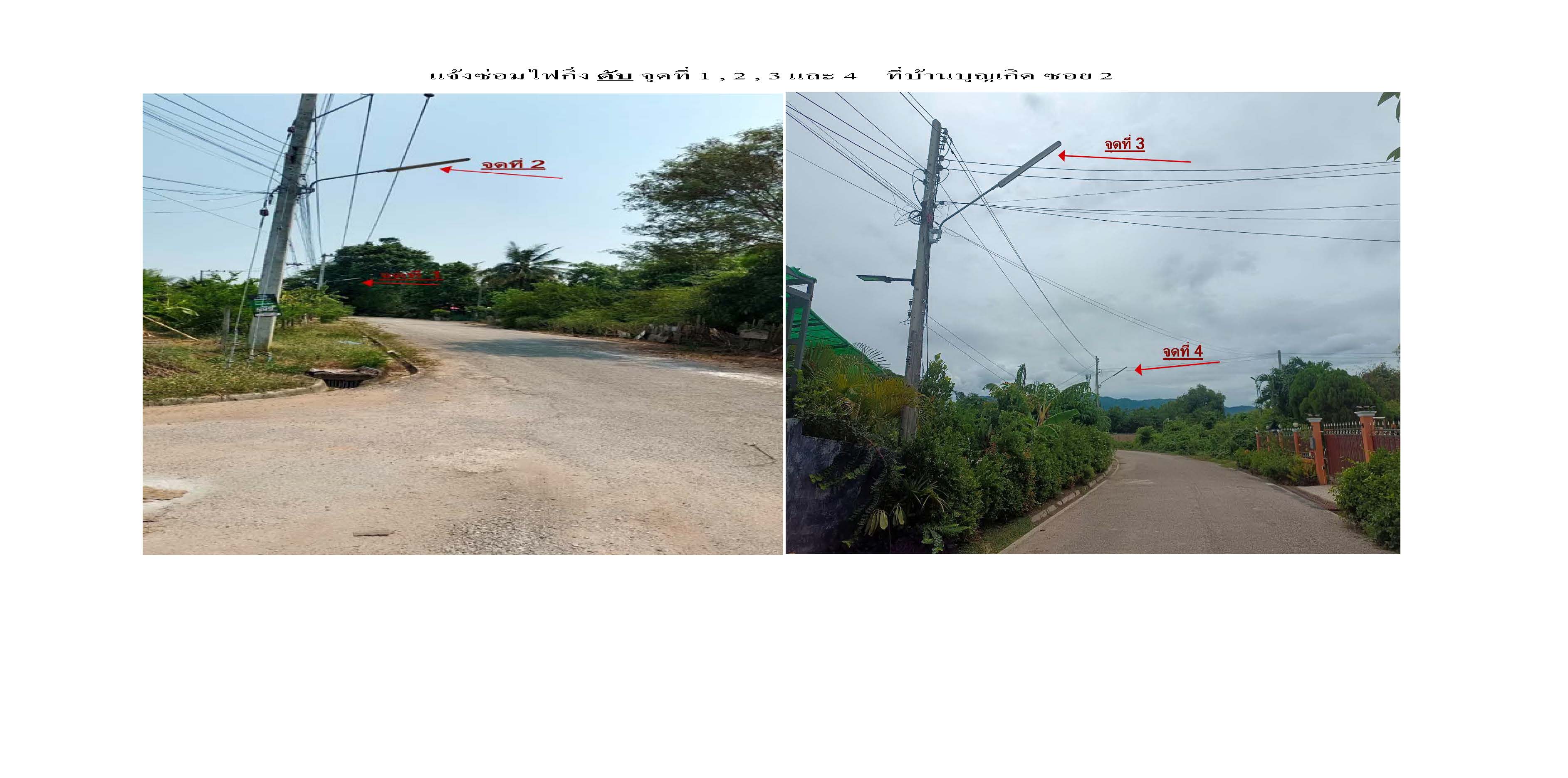 รายละเอียดของเรื่อง : เกิดมีไฟกิ่ง สาธารณะ ดับ จำนวน 4 จุด ( ตามภาพที่ส่งแนบท้ายมาด้วยแล้ว )