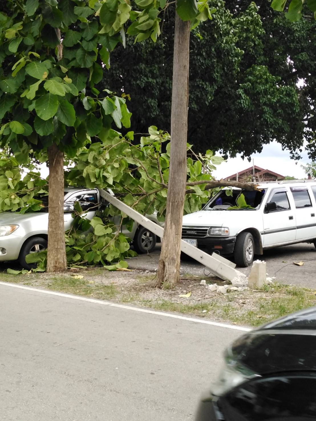 กิ่งไม้โดนพายุ หักใส่เสาไฟฟ้า ล้มใส่รถยนต์ บ้านเรือน เสียหาย จึงขอความอนุเคราะห์เร่งด่วน