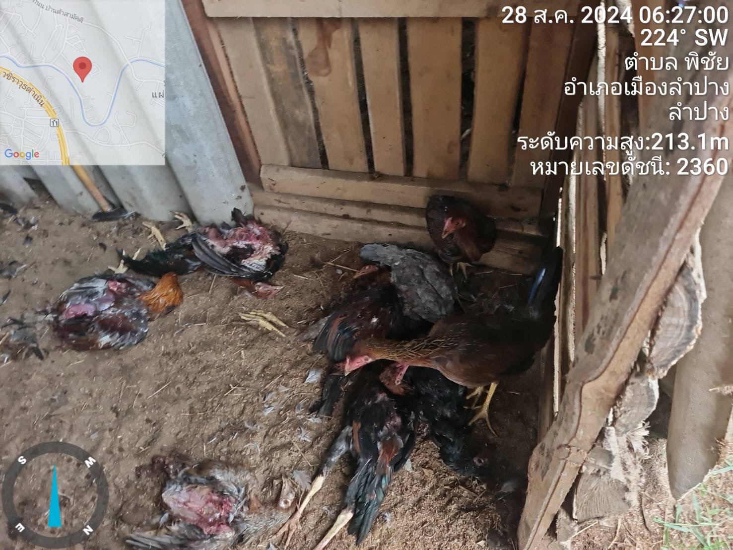 รายละเอียดของเรื่อง : เนื่องจาก บริเวณบ้านป่าขาม ม.1 ตำบลพระบาท อำเภอเมืองลำปาง มีสุนัขจรจัดซึ่งเป็นสัตว์ดุร้าย มีลักษณะสีน้ำตาลอ่อน สีน้ำตาลเข้ม และมีลวดลายคล้ายผิวของเสือ ประมาณ 4-5 ตัว ได้เข้ามาบริเวณบ้านสวน ซึ่งมีเล้าไก่ ที่ได้เลี้ยงไก่พันธุ์ไข่ ไก่ชน ไก่พันธุ์พื้นเมือง ไว้จำนวน 9 เล้า ได้เข้ามาบุกพังทำลายเล้าไก่เข้าไปกัด กิน ไก่พันธุ์ไข่ ไก่ชน ไก่พันธุ์พื้นเมือง ตาย รวมแล้ว ประมาณ 50 ตัว เหตุเกิดตั้งแต่
