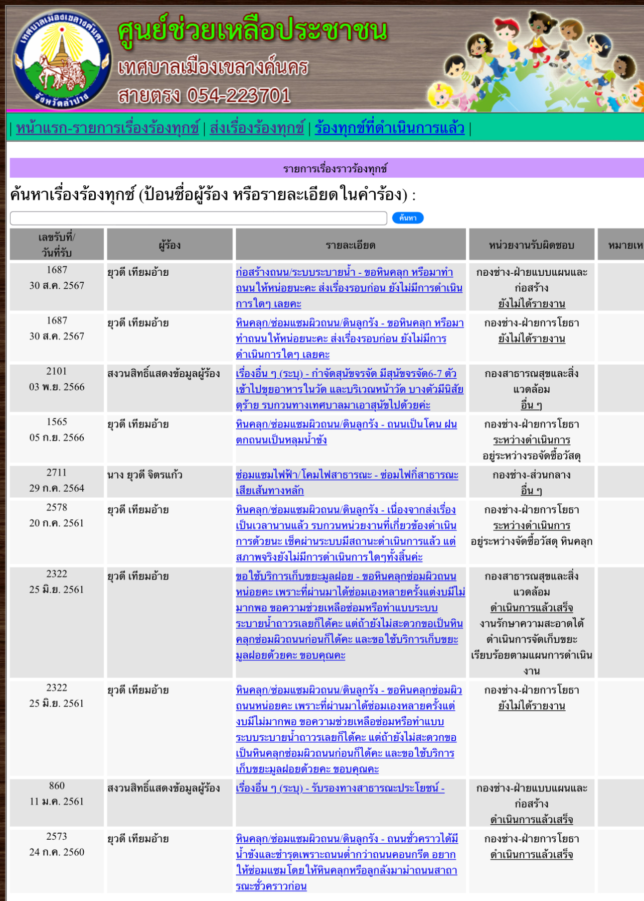 รายละเอียดของเรื่อง : ขอหินคลุก ***ทางเราส่งเรื่องหลายครั้งแล้วไม่เห็นมีการดำเนินการใดๆเลยคะ |