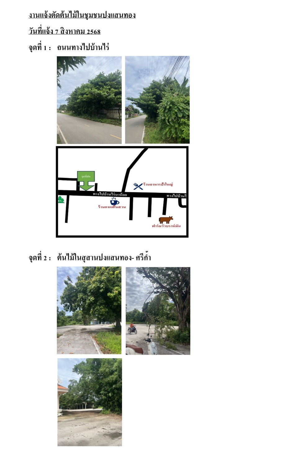 รายละเอียดของเรื่อง : ขอความอนุเคราะห์ตัดต้นไม้ที่สูงติดสายไฟ และมีกิ่งไม้ยื่นเข้ามาในถนน ซึ่งทำให้สายไฟและสายสื่อสารชำรุดเสียหาย รวมถึงอาจเกิดอุบัติเหตุจากการสัญจรผ่านได้ บริเวณที่ต้องการตัดตามเอกสารไฟล์แนบ |