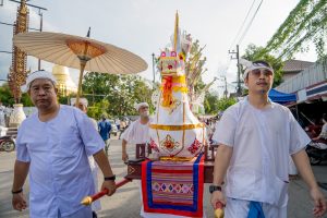 วันที่ 27 พฤศจิกายน 2567 เวลา 13.00 น. นายไพฑูรย์ โพธิ์ทอง นายกเทศมนตรีเมืองเขลางค์นคร นำคณะผู้บริหาร สมาชิกสภาเทศบาล และหัวหน้าส่วนราชการ พร้อมด้วยพนักงาน เจ้าหน้าที่เทศบาลเมืองเขลางค์นคร และคณะกรรมการสภาวัฒนธรรมเทศบาลเมืองเขลางค์นคร คณะกรรมการพัฒนาสตรีเทศบาลเมืองเขลางค์นคร คณะกรรมการกลุ่มผู้สูงวัยเทศบาลเมืองเขลางค์นคร และประชาชนในเขตเทศบาลเมืองเขลางค์นคร ร่วมเดินขบวนอัญเชิญเครื่องครัวตานสักการะ หลวงพ่อเกษม เขมโก และมณฑปสรงน้ำพระเจ้าแก้ว ใน “งานบุญตามรอยศรัทธา ไหว้สาอริยสงฆ์เจ้า หลวงพ่อเกษม เขมโก” ประจำปี 2567 โดยเคลื่อนขบวนจากบริเวณเทศบาล 1 ไปยังสถานปฏิบัติธรรมหลวงพ่อเกษม เขมโก (สุสานไตรลักษณ์)