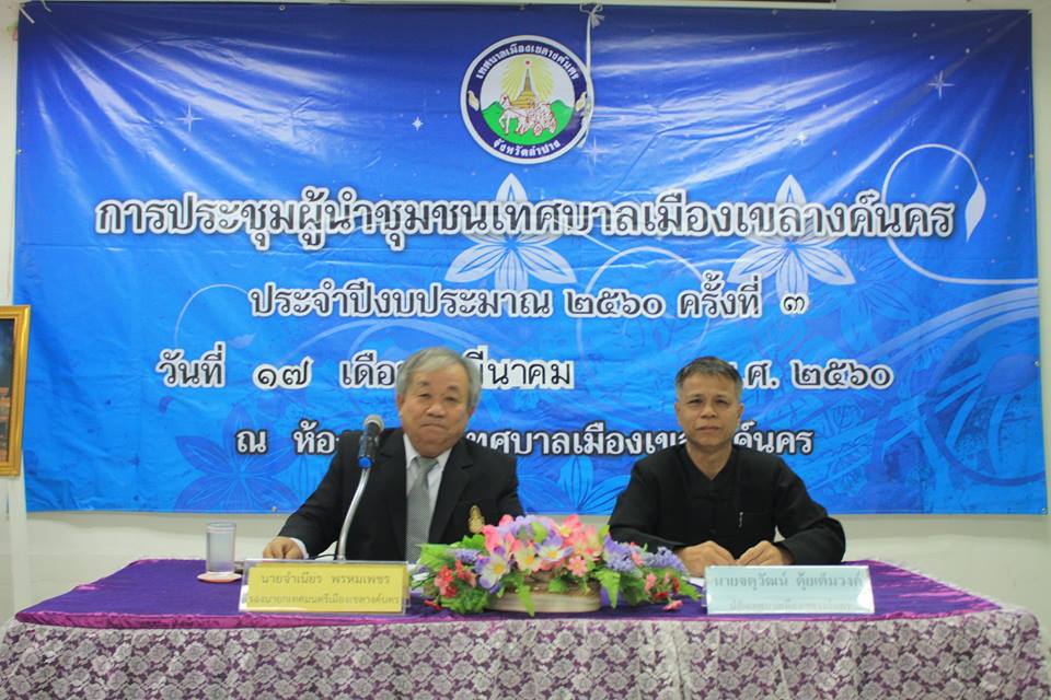 เมื่อวันที่ 17 มีนาคม 2560 เวลา 09.00 น.นายไพฑูรย์ โพธิ์ทอง นายกเทศมนตรีเมืองเขลางค์นคร มอบหมายให้นายจำเนียร พรหมเพชร รองนายกเทศมนตรีเมืองเขลางค์นคร เป็นประธานในการประชุมผู้นำชุมชน ครั้งที่ 3/2560 โดยมีคณะผู้บริหาร สมาชิกสภาเทศบาล และหัวหน้าส่วนราชการร่วมเป็นเกียรติ ในการประชุมมีการมอบเกียรติบัตรให้กับประธานชุมชนคนใหม่ เพื่อเป็นขวัญกำลังใจในการปฏิบัติหน้าที่ จำนวน 2 ชุมชน คือ