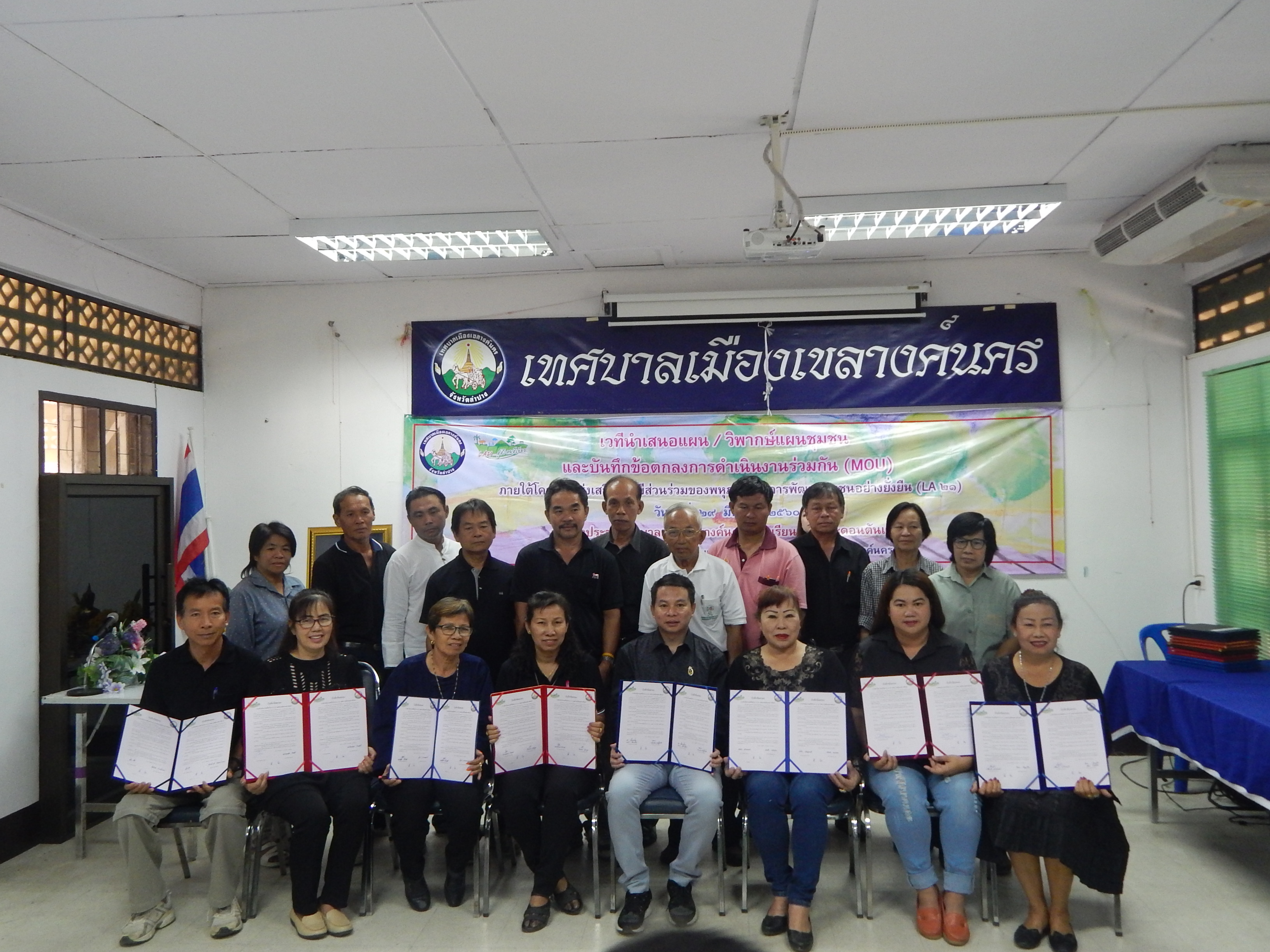 โดยมีการลงนามบันทึกความร่วมมือ (MOU) การดำเนินงานเครือข่าย LA 21 เทศบาลเมืองเขลางค์นคร ระหว่างผู้บริหารเทศบาลฯ และแกนนำชุมชนเครือข่าย LA 21 ใหม่ จำนวน 28 ชุมชน รวมถึงมีการนำเสนอ/วิพากษ์แผนชุมชนด้านสิ่งแวดล้อมของแต่ละชุมชนฯ