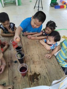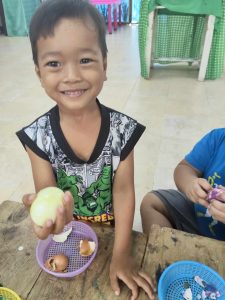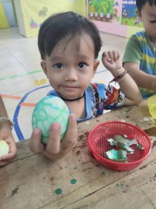 ศูนย์พัฒนาเด็กเล็กเล็กบ้านกาด ให้เด็กฝึกปฎิบัติทำไข่แปลงร่าง(ไข่ไดโนเสาร์)