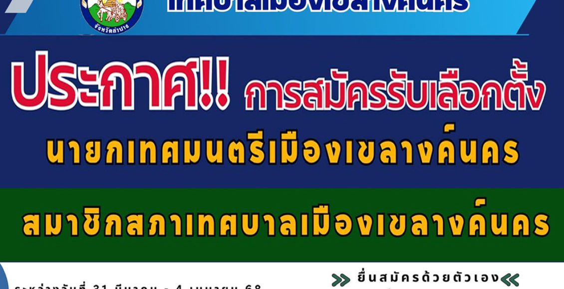 ประชาสัมพันธ์ผู้สนใจได้พิจารณาสมัครรับเลือกตั้งสมาชิกสภาเทศบาลเมืองเขลางค์นครและนายกเทศมนตรีเมืองเขลางค์นคร