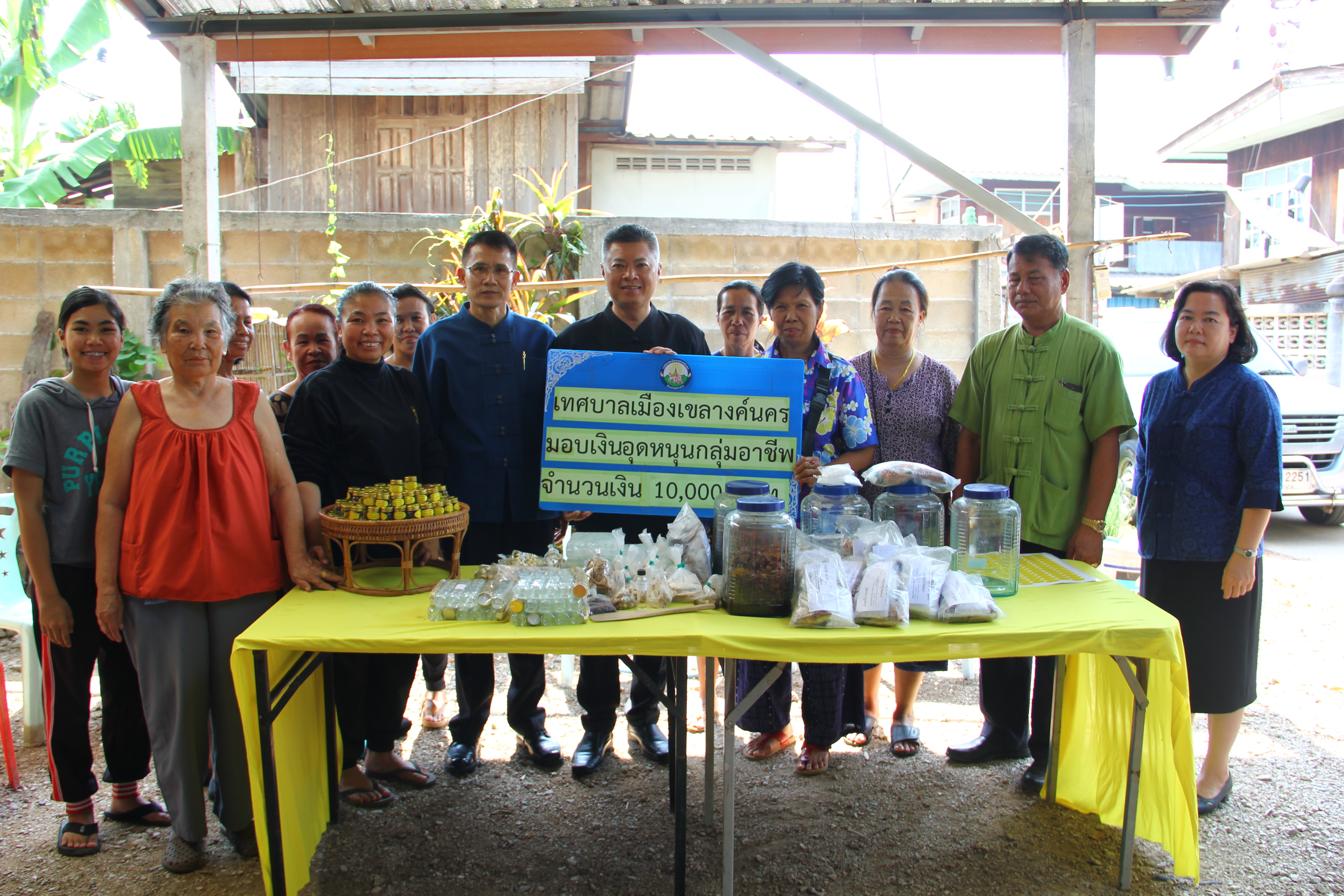 เมื่อวันที่ 21 เมษายน 2560 นายไพฑูรย์ โพธิ์ทอง นายกเทศมนตรีเมืองเขลางค์นคร พร้อมด้วยนายประสงค์ เรือนสอน รองปลัดเทศบาล ได้มอบเงินอุดหนุนตามโครงการสนับสนุนการดำเนินงานของกลุ่มอาชีพ ชุมชนบ้านหนองวัวเฒ่า หมู่ที่ 7 ตำบลพระบาท จำนวน 10,000 บาท โดยดำเนินการจัดอบรมเรื่อง “การทำยาดมสมุนไพรนพเก้า” แก่สมาชิกกลุ่ม จำนวน 12 คน