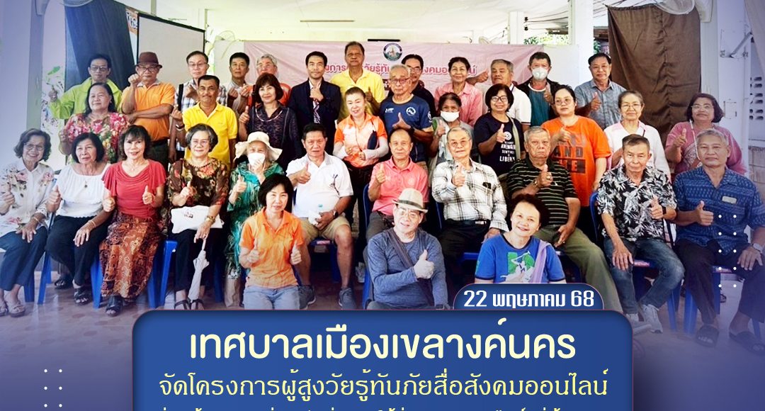 โครงการผู้สูงวัยรู้ทันภัยสื่อสังคมออนไลน์ รุ่น ที่ 5 โครงการผู้สูงวัยรู้ทันภัยสื่อสังคมออนไลน์ รุ่น ที่ 5 วันที่ 22 พฤษภาคม 2568 เทศบาลเมืองเขลางค์นครจัดโครงการผู้สูงวัยรู้ทันภัยสื่อสังคมออนไลน์ เพื่อสร้างทักษะที่จำเป็นต่อการใช้สื่อสังคมออนไลน์แก่ผู้สูงอายุ และเพื่อส่งเสริมให้ผู้สูงอายุรู้ทันภัยสื่อสังคมออนไลน์ และได้รับเกียรติจากนายภาสกร สีเหลือง นักวิชาการคอมพิวเตอร์ สำนักวิทยบริการและเทคโนโลยีสารสนเทศ มหาวิทยาลัยราชภัฏลำปางเป็นวิทยากรให้ความรู้ ณ ศาลาอเนกประสงค์ชุมชนธนวรรณ หมู่ที่ 1 ตำบลพระบาท #เพจเทศบาลเมืองเขลางค์นคร #เทศบาลเมืองเขลางค์นคร #เมืองแห่งคุณภาพ #คุณภาพคนคุณภาพชีวิตคุณภาพการบริหารจัดการ Share FacebookTwitterGoogle+ReddItWhatsAppPinterestEmail