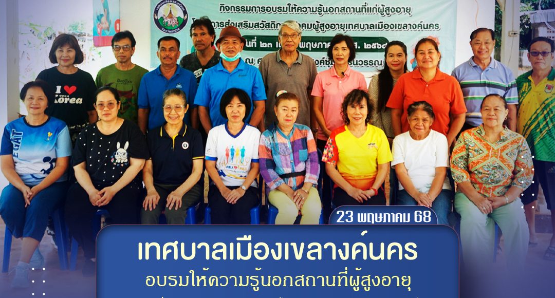 วันที่ 23 พฤษภาคม 2568 เทศบาลเมืองเขลางค์นคร ดำเนินการอบรมให้ความรู้นอกสถานที่แก่ผู้สูงอายุ ตามโครงการส่งเสริมสวัสดิการสังคมผู้สูงอายุเทศบาลเมืองเขลางค์นคร ประจำปีงบประมาณ พ.ศ.2568 โดยมีผู้สูงอายุในชุมชนธนวรรณ ข้าร่วมกิจกรรม ทั้งนี้ ได้รับเกียรติจาก นางพรทิพย์ ชูเขียว ปราชญ์ชาวบ้าน เป็นวิทยากรให้ความรู้เกี่ยวกับ การส่งเสริมการดูแลสุขภาพและการออกกำลังกายสำหรับผู้สูงอายุ ณ ศาลาอเนกประสงค์ชุมชนธนวรรณ ตำบลพระบาท จังหวัดลำปาง