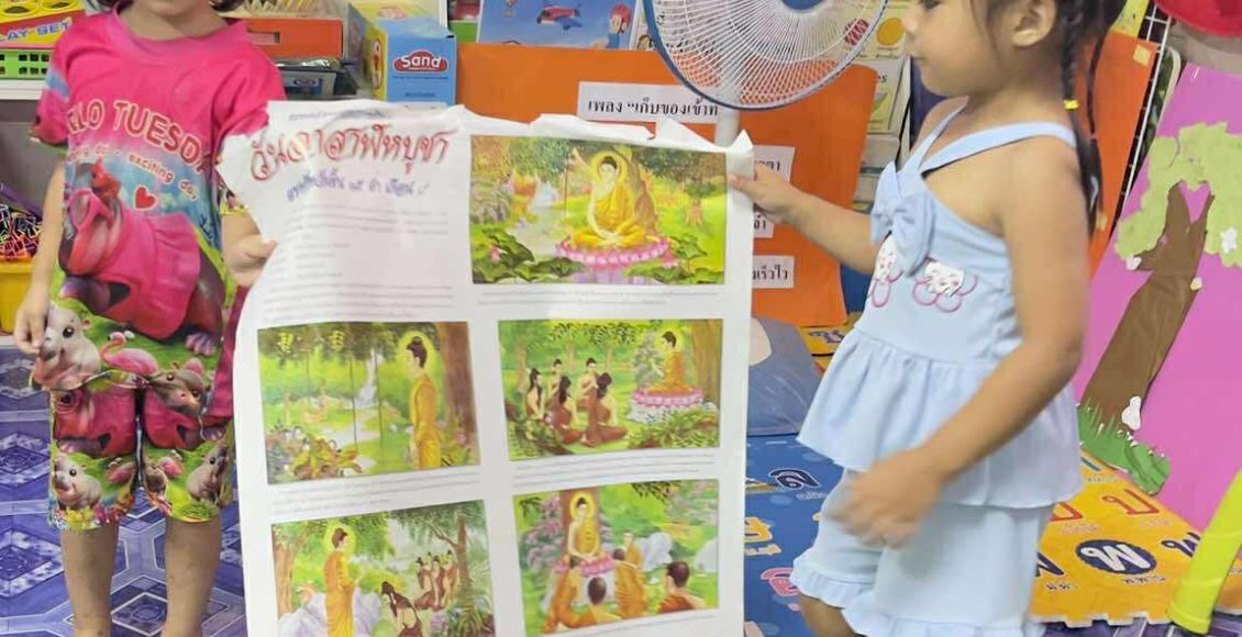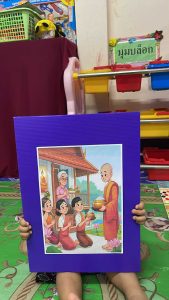 ศูนย์พัฒนาเด็กเล็กบ้านผาลาดทบทวนกิจกรรมวันวิสาขบูชา ครูจัดกิจกรรมไหว้พระสวดมนต์การใส่บาตรพระ ถามเด็กใส่อะไรในบาตรเด้กตอบคำถามครู ให้เด็กดูภาพใส่บาตรพระ เด็ก ๆ ระบายสีภาพ Share FacebookTwitterGoogle+ReddItWhatsAppPinterestEmail