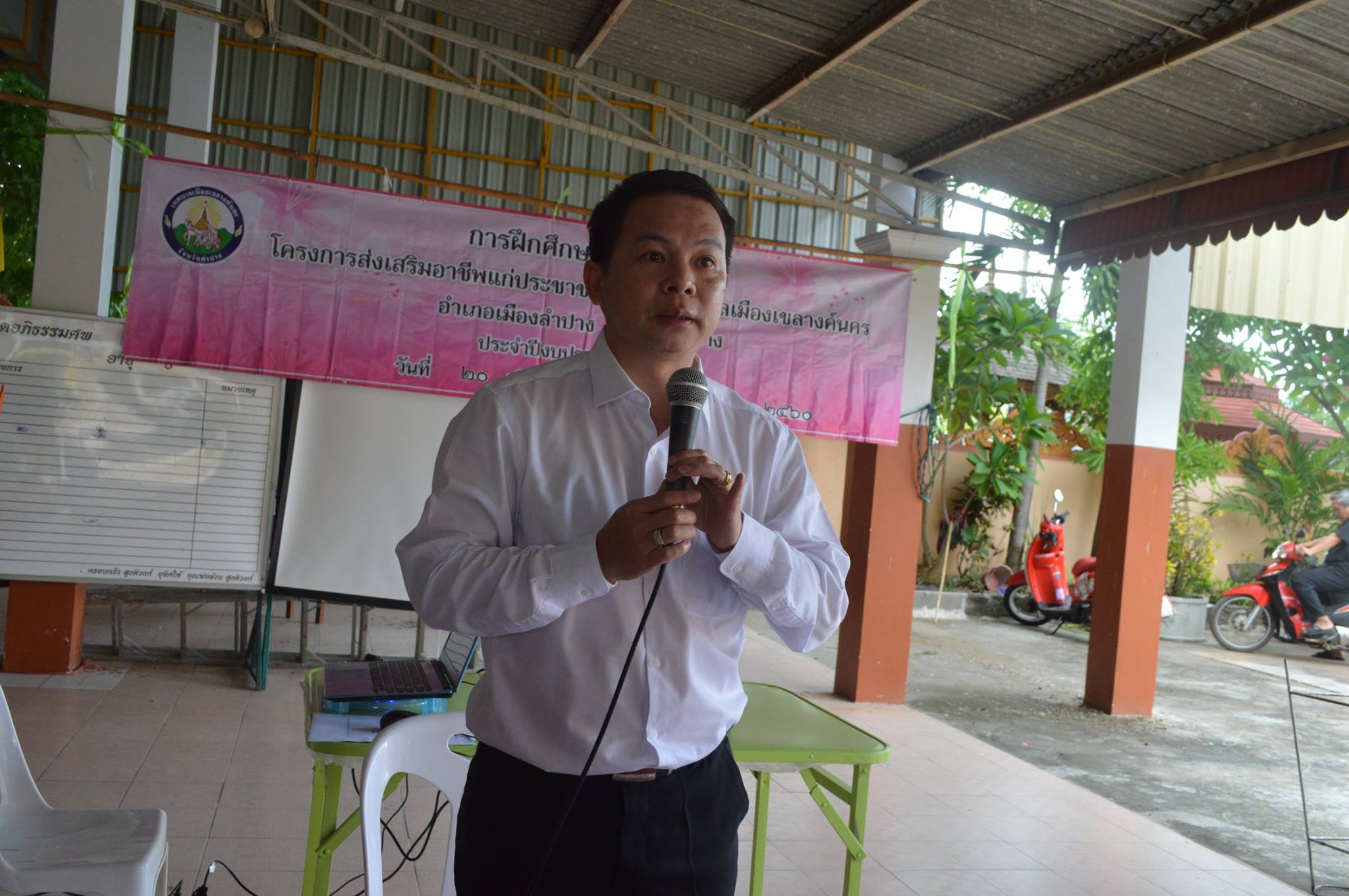วันที่ 20 มิถุนายน 2560 เวลา 09.30 น. นายไพฑูรย์ โพธิ์ทอง นายกเทศมนตรีเมืองเขลางค์นคร มอบหมายให้ นายธาราเงิน จันทร์คำ รองนายกเทศมนตรีเมืองเขลางค์นคร เป็นประธานในพิธีเปิด การฝึกอบรมเลี้ยงกบ ตาม โครงการส่งเสริมอาชีพแก่ประชาชนในเขตเทศบาลเมืองเขลางค์นคร โดยมีคณะผู้บริหาร และหัวหน้าส่วนราชการร่วมเป็นเกียรติในพิธีเปิด ณ วัดกอกชุม หมู่ 6 ตำบลพระบาท อำเภอเมืองลำปาง จังหวัดลำปาง โดยได้รับความอนุเคราะห์จากนายวิรุฬศักย์ ชัยชมภู วิทยากรผู้ให้ความรู้ในเรื่องการเพาะเลี้ยงกบ อีกทั้งยังมีการสาธิตและฝึกปฏิบัติการเลี้ยงกบ เพื่อให้ผู้เข้ารับการอบรมนำความรู้ไปต่อยอดในการประกอบอาชีพเลี้ยงตนเองและครอบครัวได้อีกด้วย