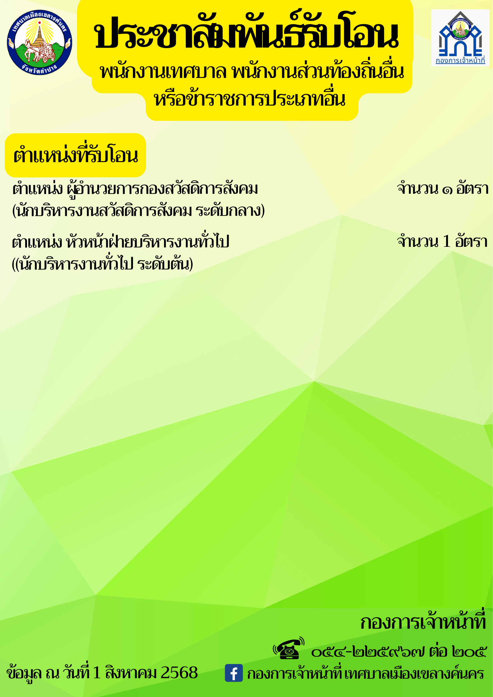 ประการเทศบาลเมืองเขลางค์นคร เรื่อง การรับโอนพนักงานเทศบาลหรือพนักงานส่วนท้องถิ่นอื่นเพื่อมาแต่งตั้งให้ดำรงค์ตำแหน่งผู้บริหารว่าง กรณีเกษียณอายุราชการ Loading... Taking too long? Reload document | Open in new tab Download Share FacebookTwitterGoogle+ReddItWhatsAppPinterestEmail