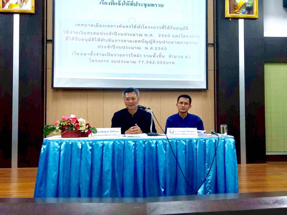 เมื่อวันที่ 20 กรกฎาคม 2560 เวลา 13.30 น. นายไพฑูรย์ โพธิ์ทอง นายกเทศมนตรีเมืองเขลางค์นครเป็นประธานในการประชุมประชาคมเมืองเทศบาลเมืองเขลางค์นคร ตามโครงการจัดทำแผนพัฒนาท้องถิ่นโดยกระบวนการมีส่วนร่วม ในการประชุมประชาคมท้องถิ่นเพื่อทบทวนเพิ่มเติมหรือเปลี่ยนแปลงแผนพัฒนาท้องถิ่นสี่ปี (พ.ศ. 2561 – 2564) โดยมีคณะผู้บริหาร สมาชิกสภาเทศบาล หัวหน้าส่วนราชการ พนักงานเทศบาล ประธานชุมชน คณะกรรมการชุมชน ผู้แทนภาครัฐ ภาคเอกชน ภาคประชาชน กลุ่มองค์กรต่างๆ ในเขตเทศบาลเมืองเขลางค์นคร เข้าร่วมการประชุม เพื่อมีส่วนร่วมในการทบทวน และพิจารณาแผนพัฒนาเทศบาลเมืองเขลางค์นครสี่ปี(พ.ศ.2561-2564) ณ ห้องประชุมธัญกร อาคาร 36 คณะวิทยาการจัดการ มหาวิทยาลัยราชภัฎลำปาง