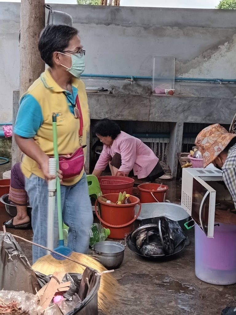 3. กลุ่มสตรีชุมชนบ้านหัวทุ่งสามัคคี ทำความสะอาดวัดและโรงครัว