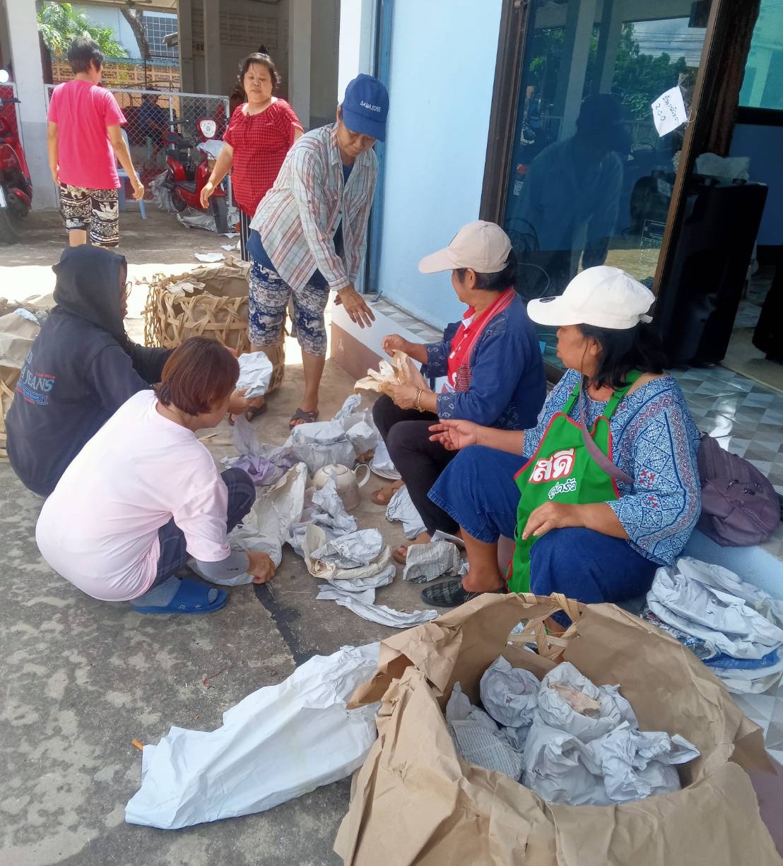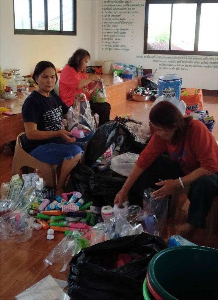 – กลุ่มสตรีร่วมกันคัดแยกขยะในชุมชน