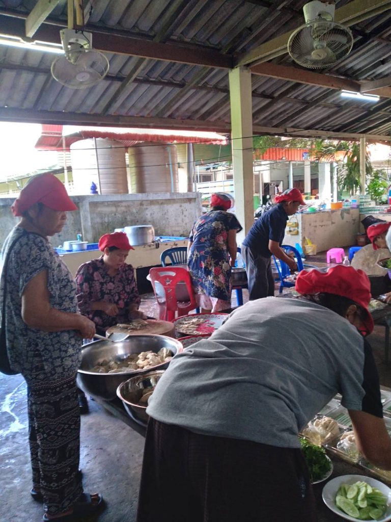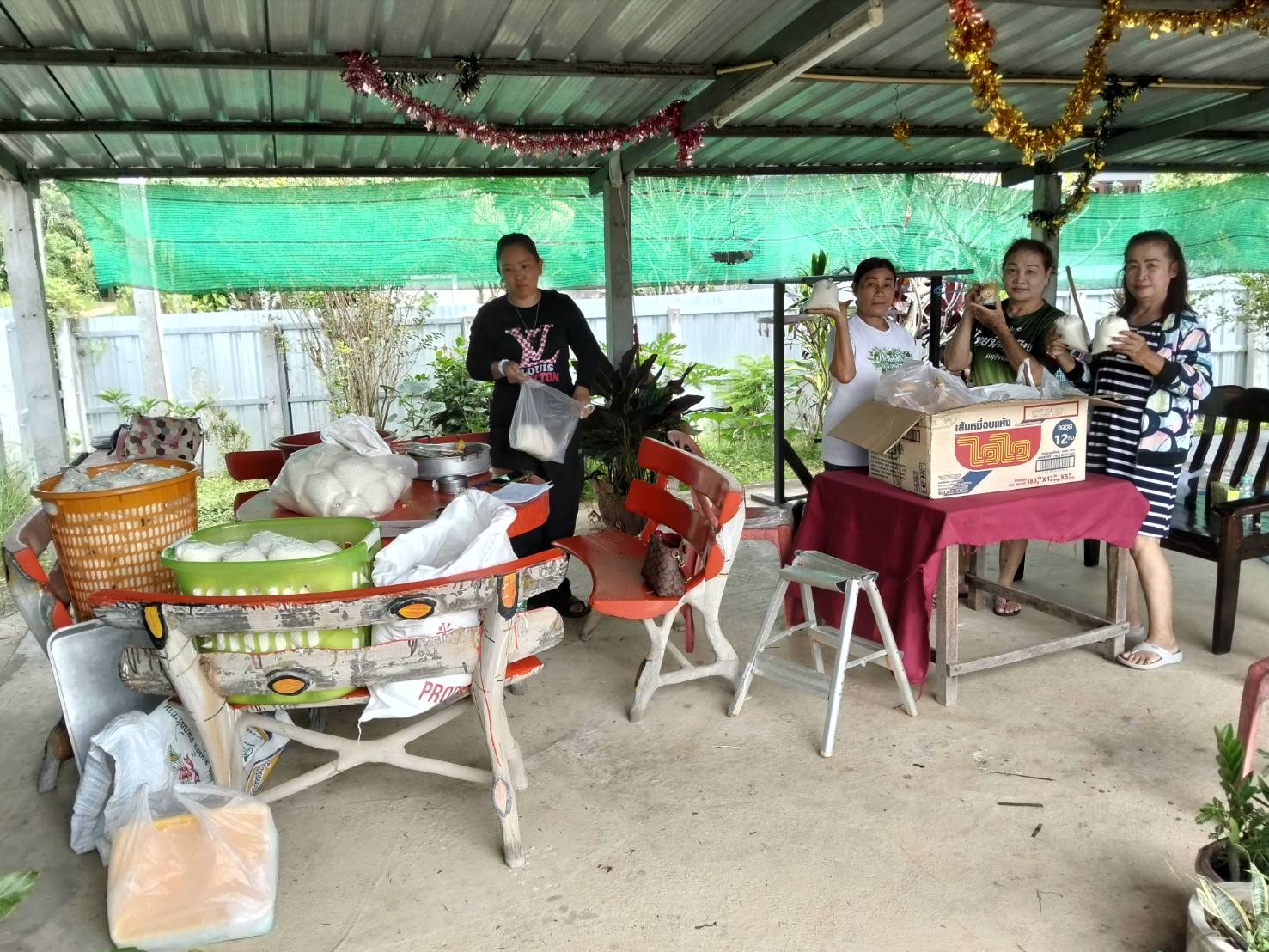 1. กลุ่มสตรีชุมชนบ้านบุญเกิด รวมกลุ่มจัดเตรียมทำโรงทาน