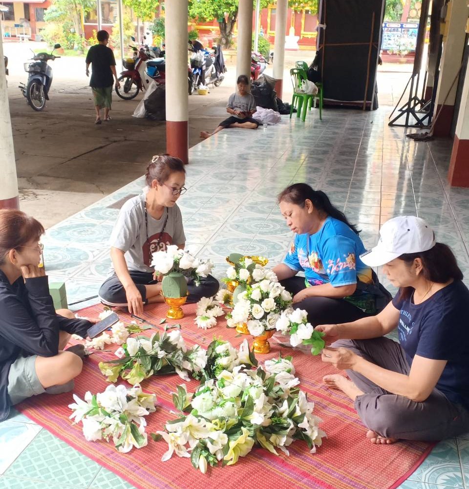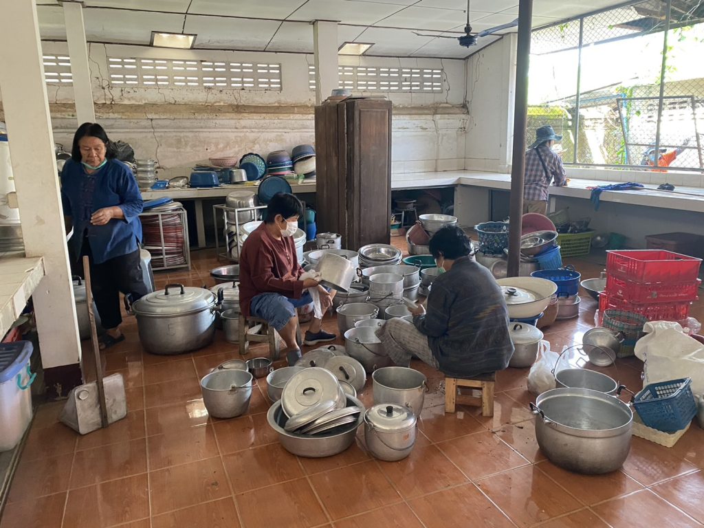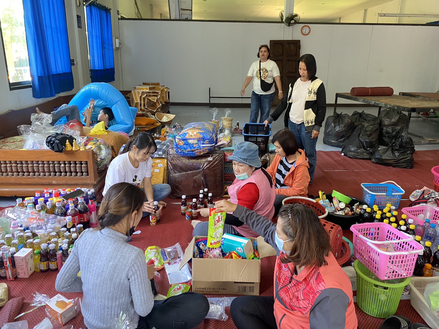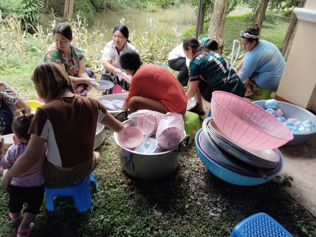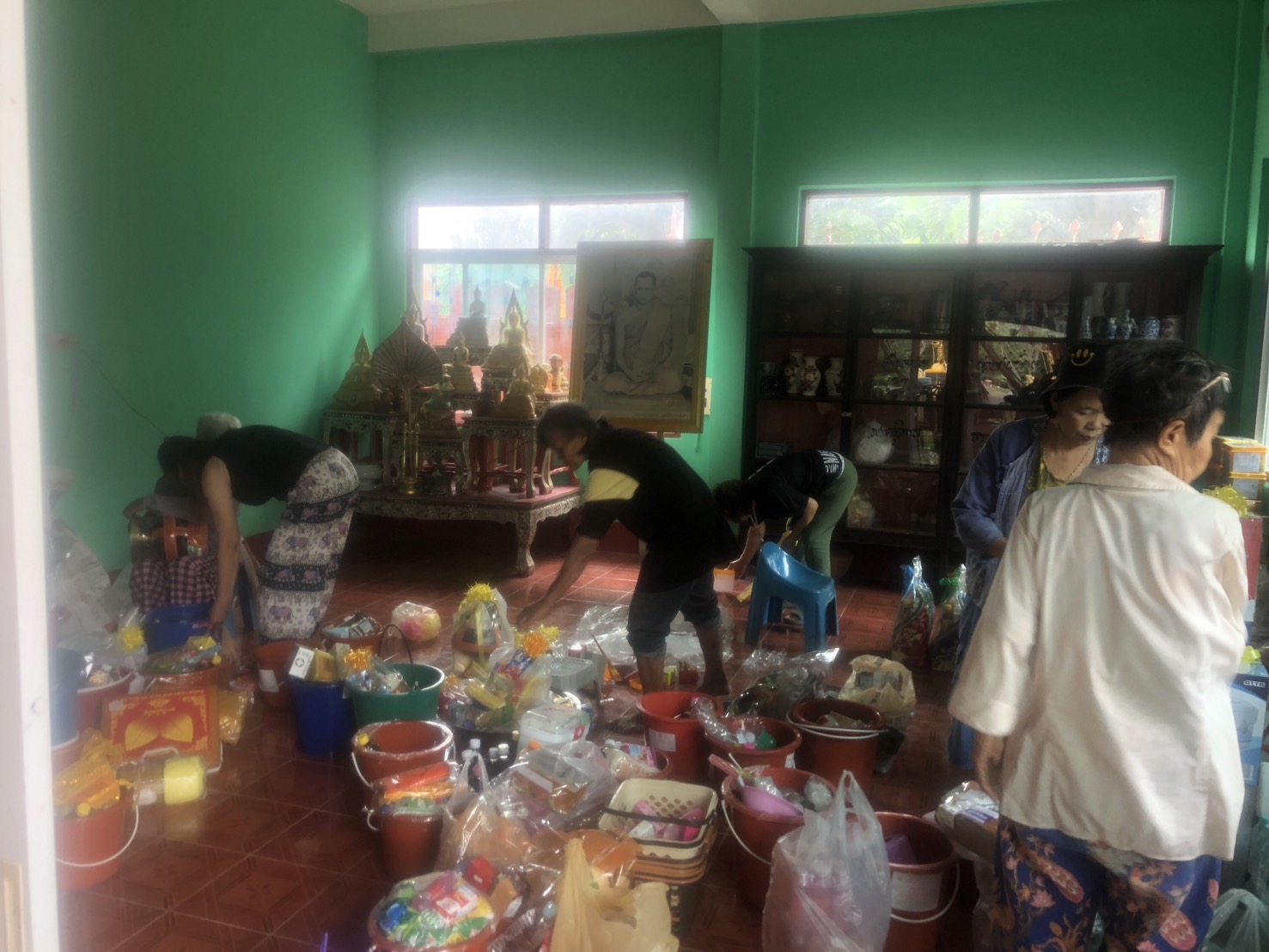 – กลุ่มสตรีจัดเตรียมของเพื่อทำโรงทาน