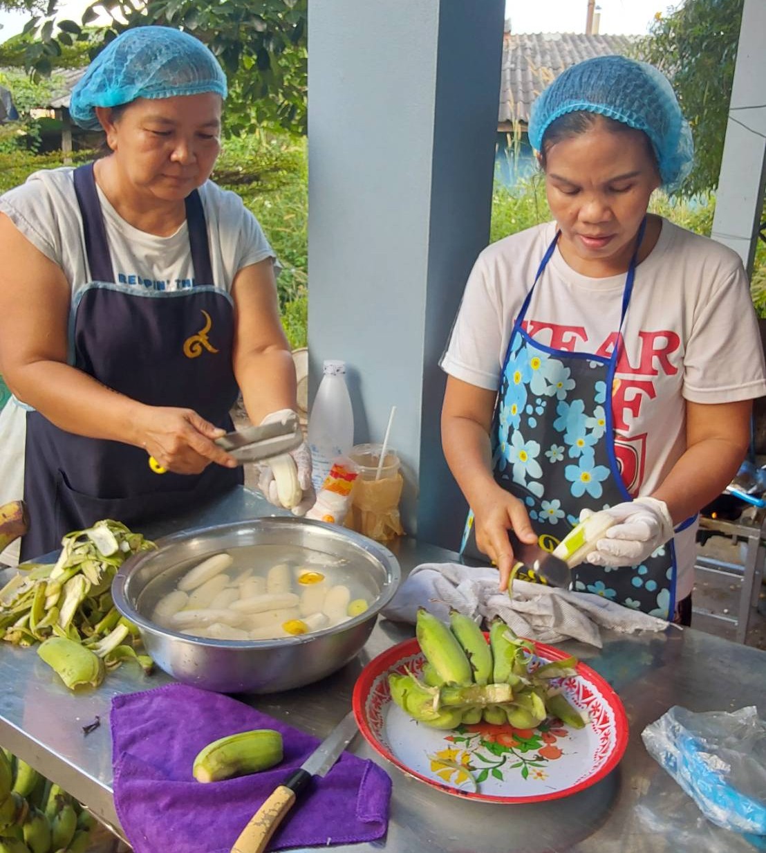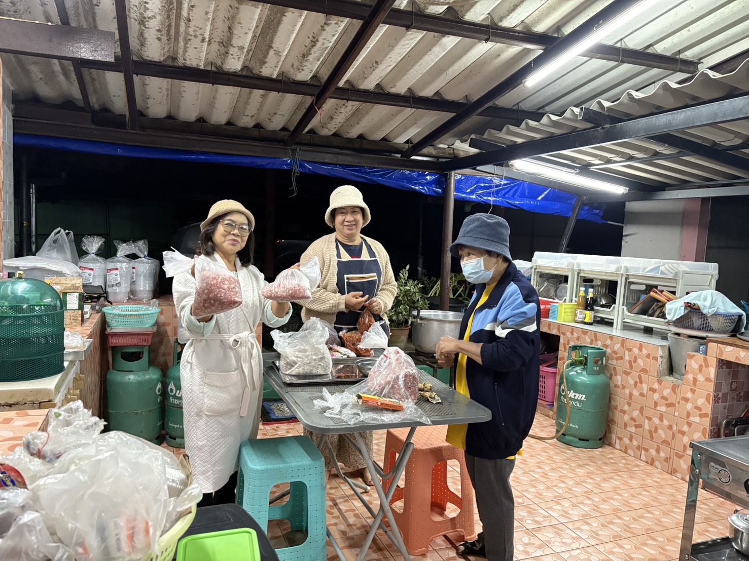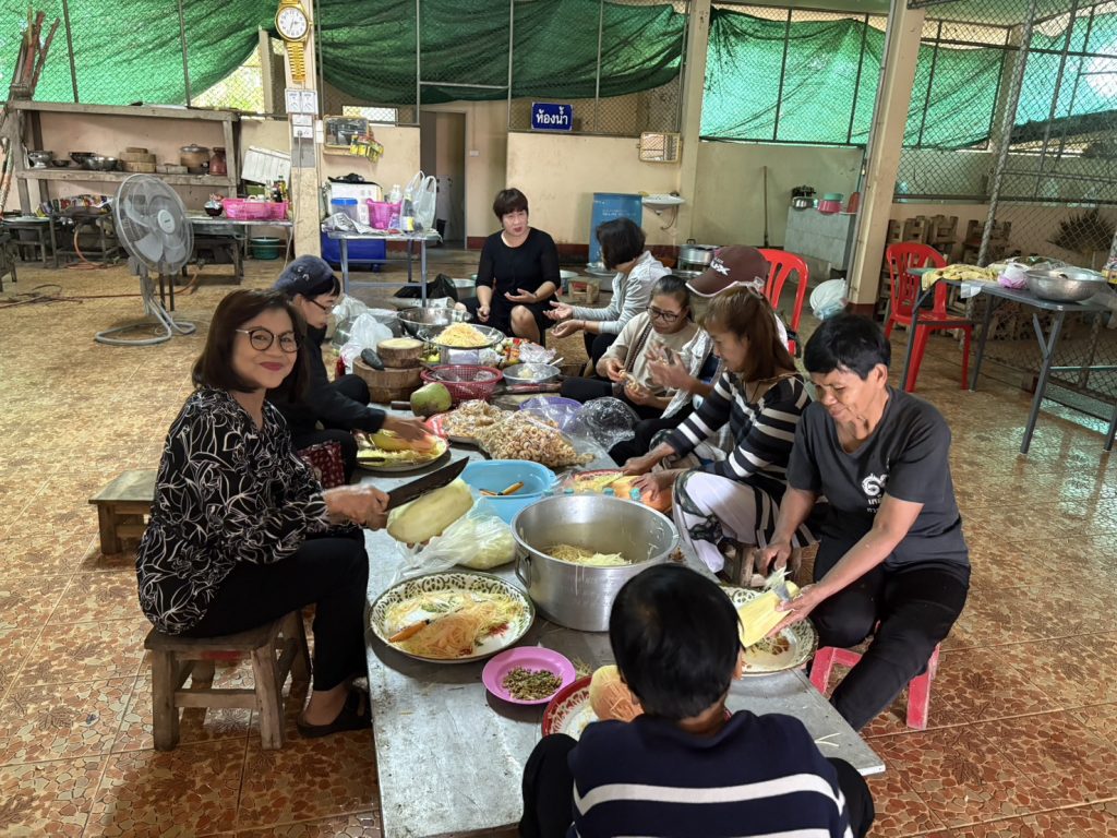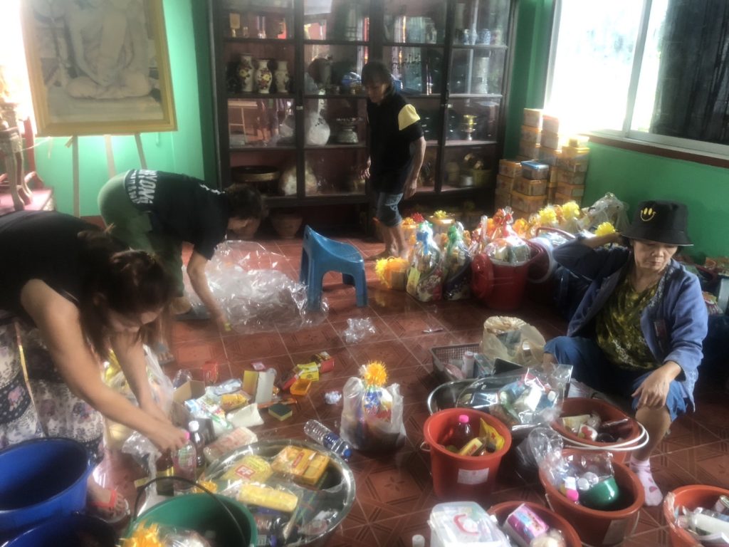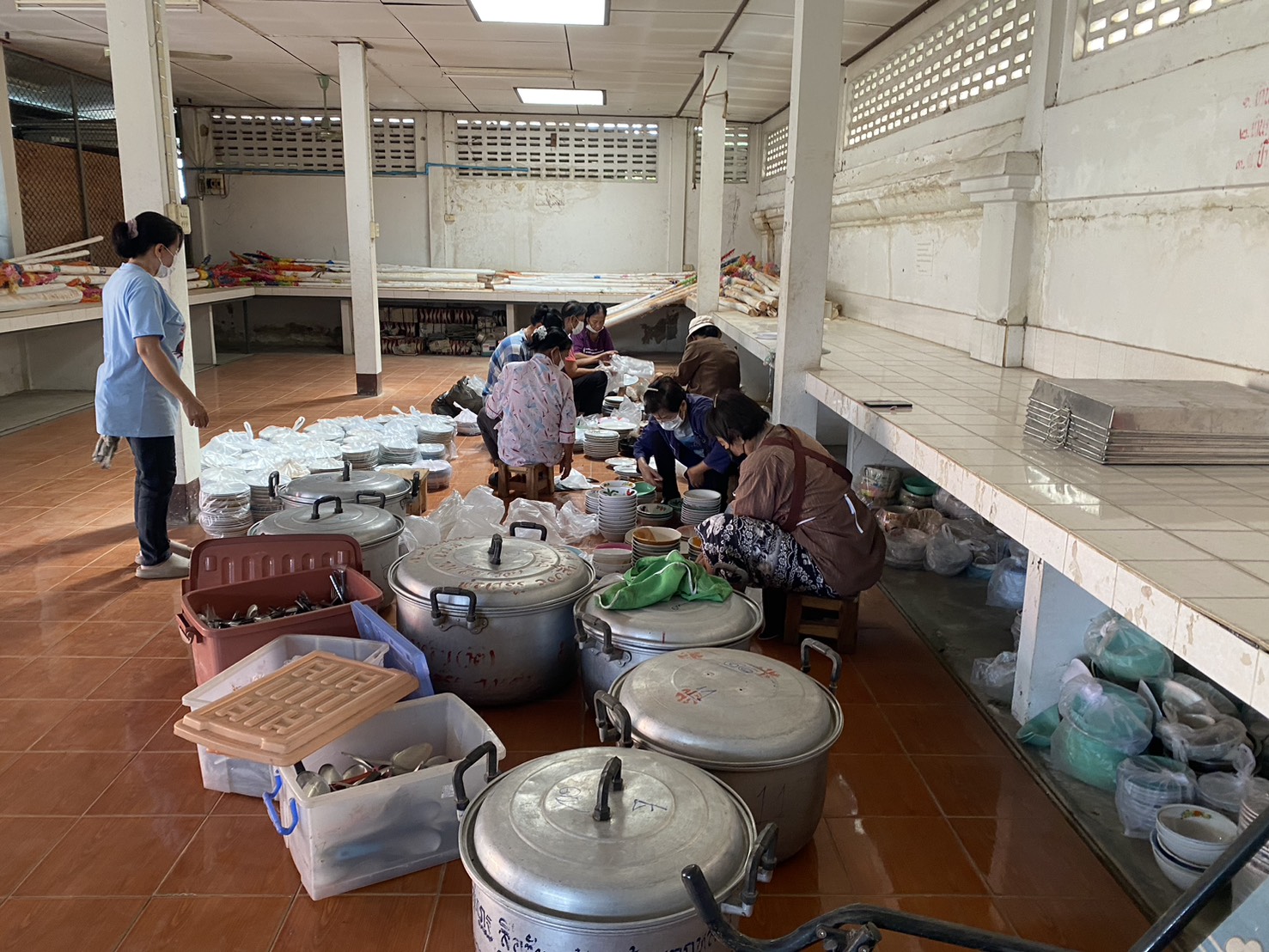 – กลุ่มสตรีจัดเตรียมของเพื่อทำโรงทาน