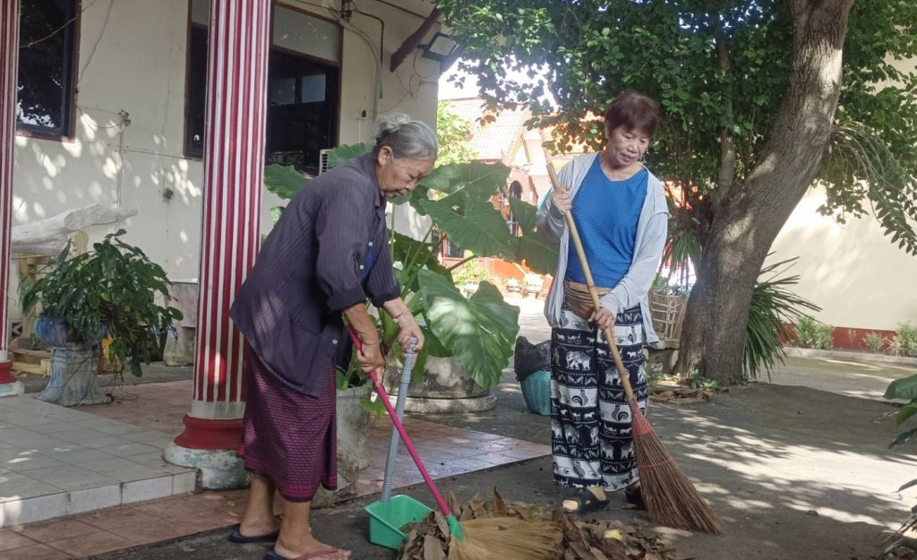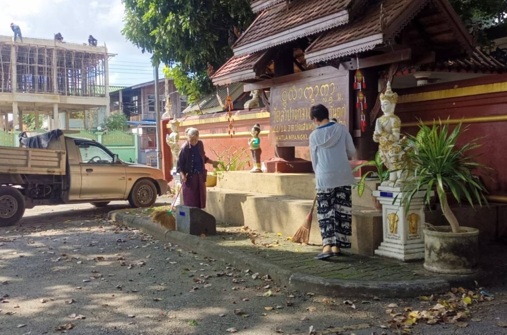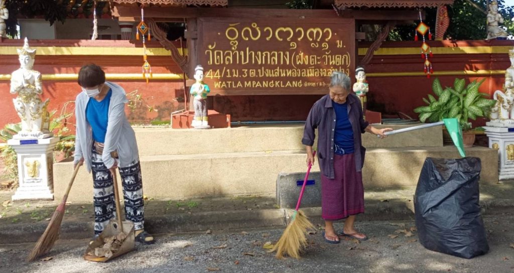 4. กลุ่มสตรีชุมชนบ้านลำปางกลางตะวันตก  ทำความสะอาดวัด