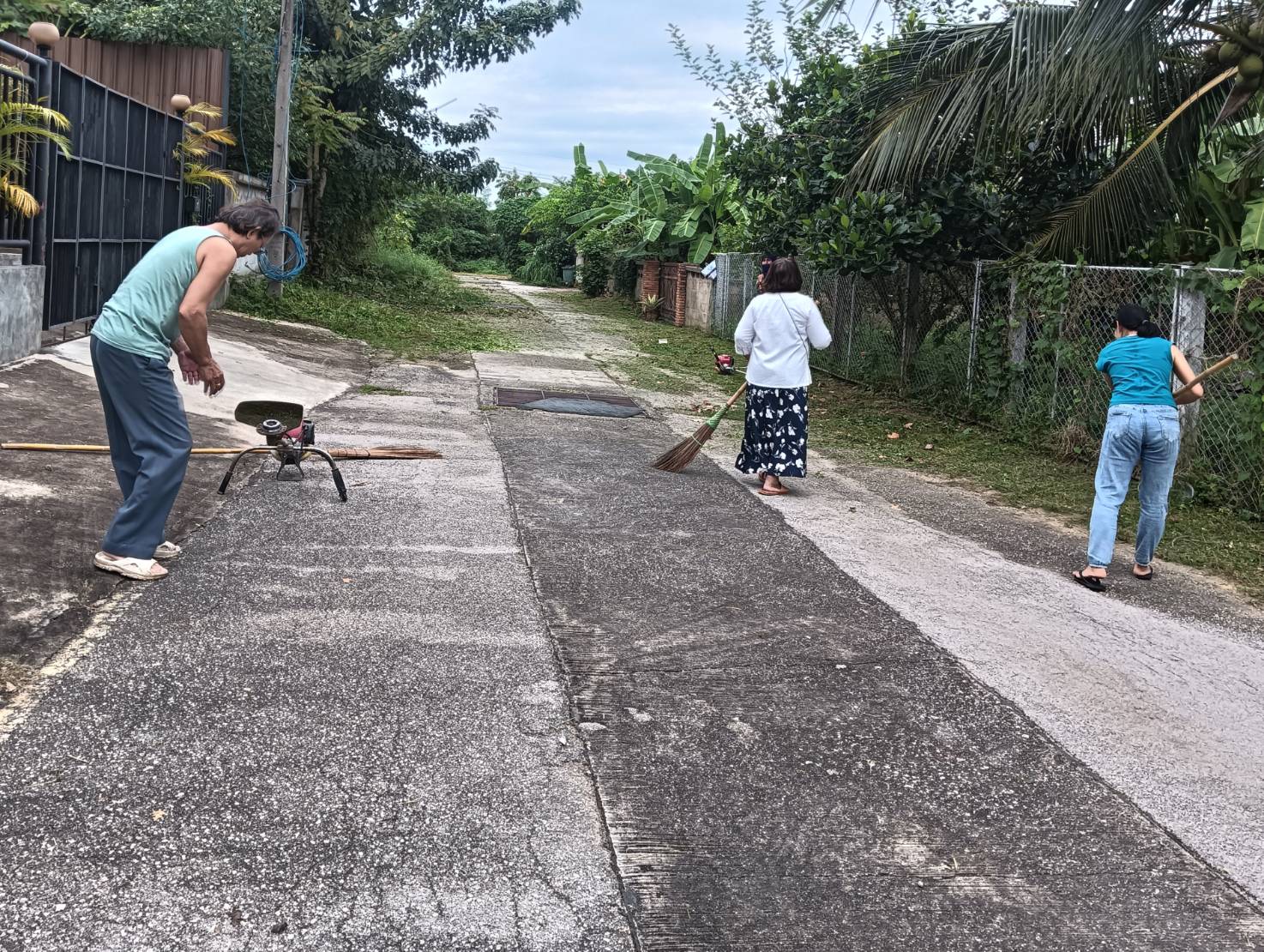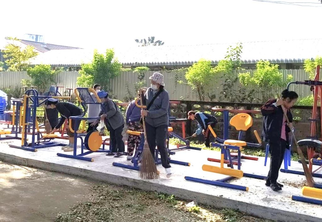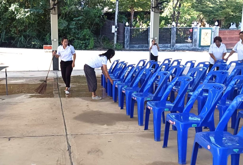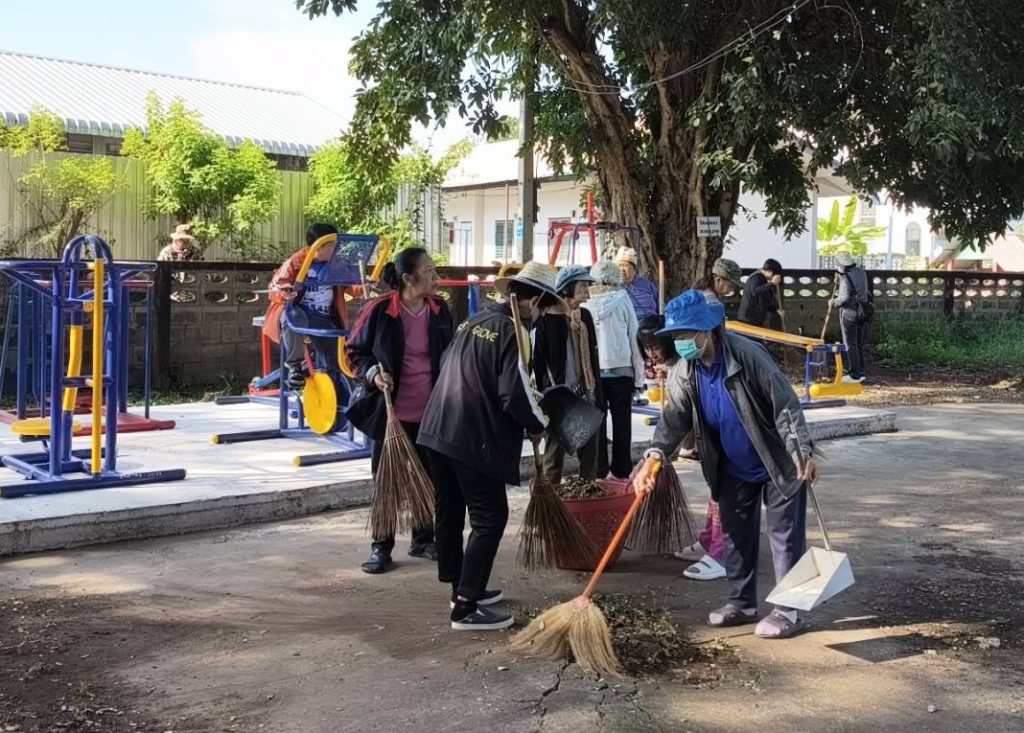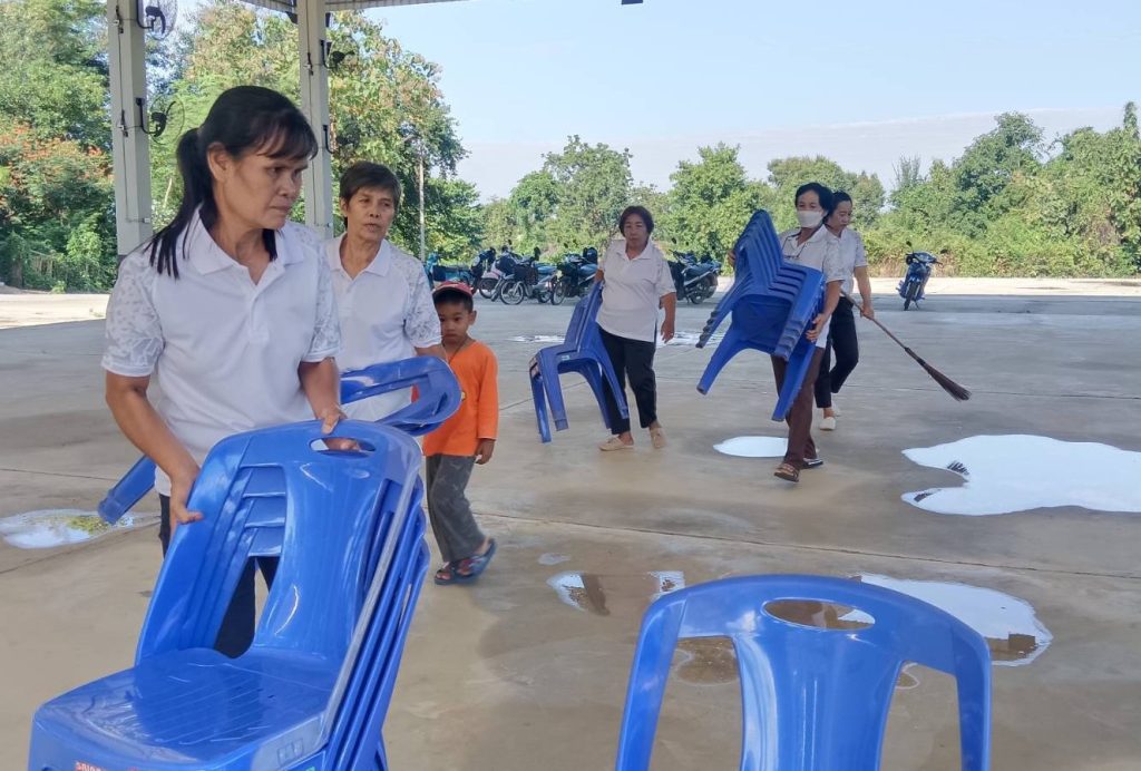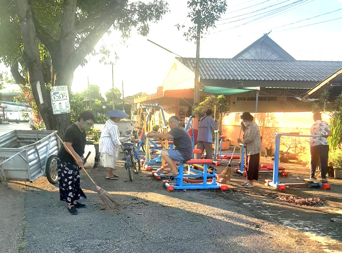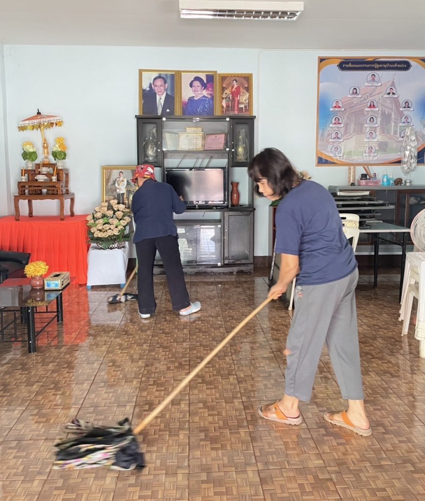 7. กลุ่มสตรีชุมชนบ้านหัวทุ่งสามัคคี  ทำความสะอาดศาลาโดมชุมชน