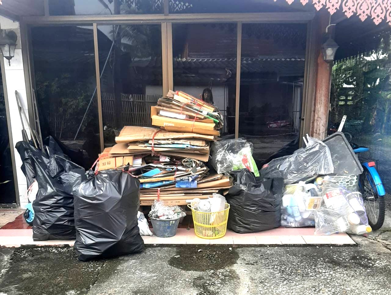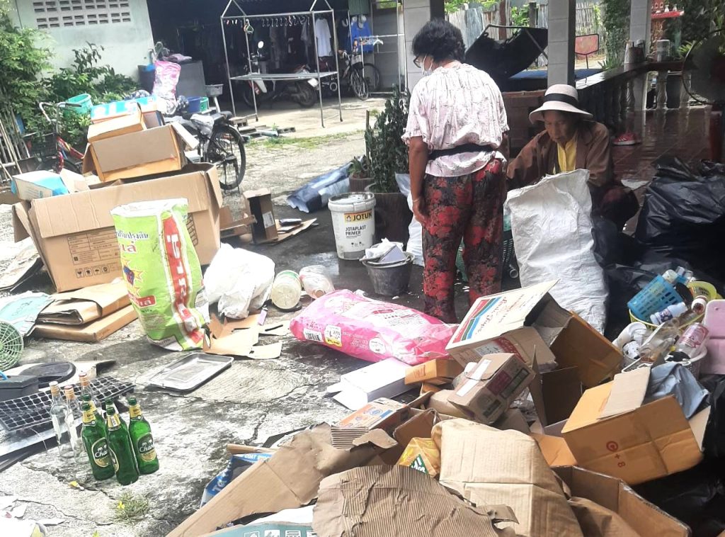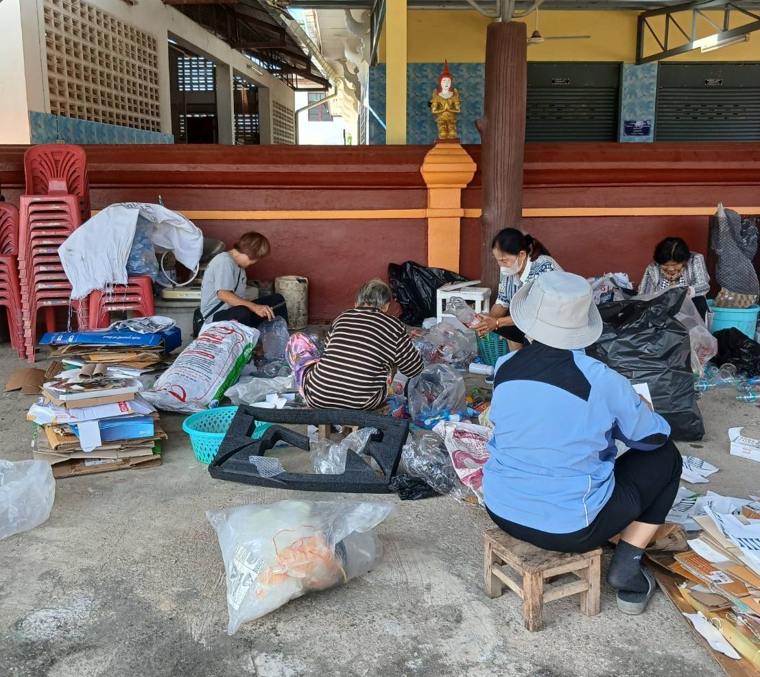 – กลุ่มสตรีร่วมกันคัดแยกขยะในชุมชน