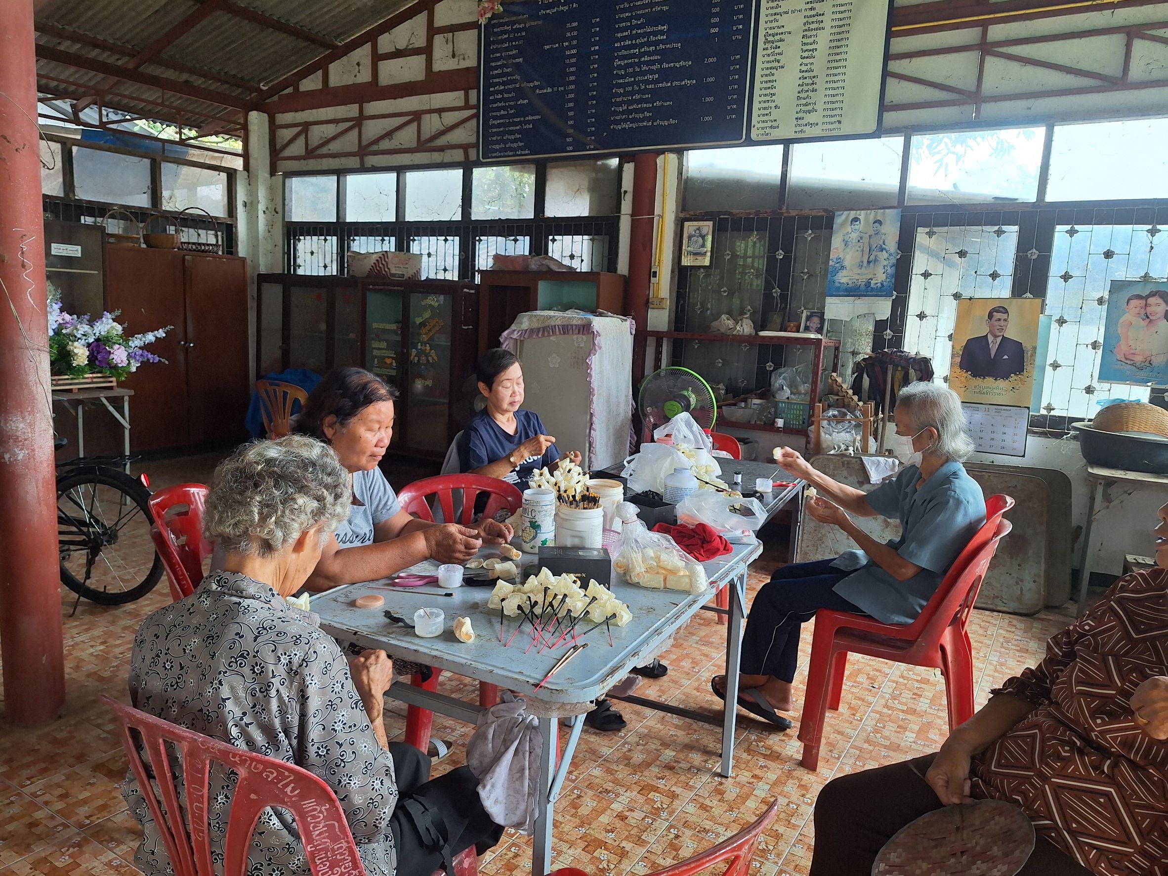 – กลุ่มสตรีร่วมกลุ่มทำอาหารแบ่งปันให้ผู้สูงอายุในชุมชน