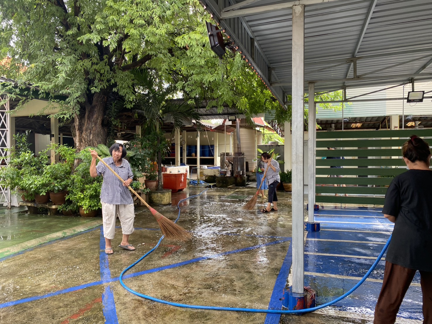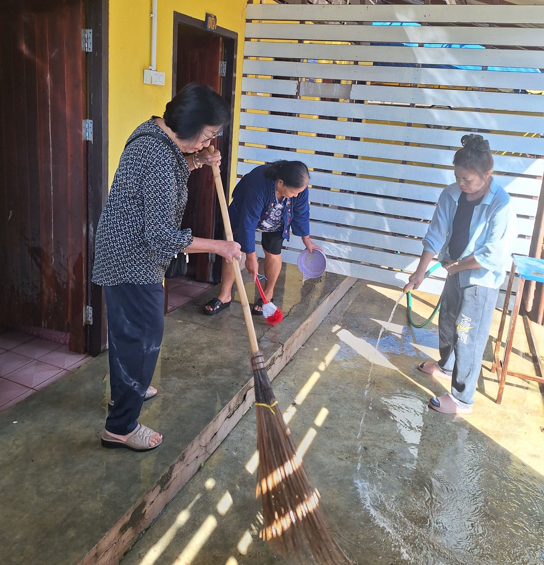 2. กลุ่มสตรีชุมชนบ้านหมอสม  ทำความสะอาดโรงครัว
