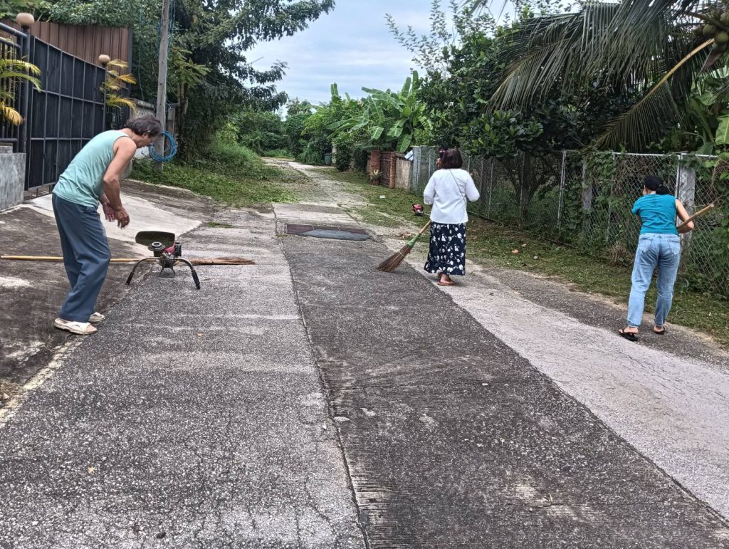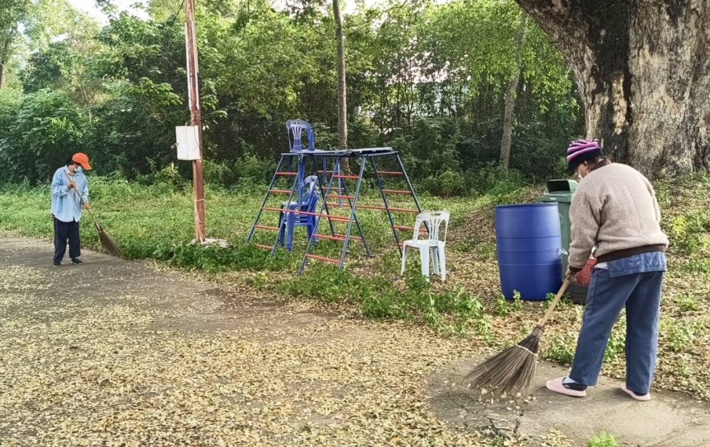 12. กลุ่มสตรีชุมชนบ้านลำปางกลางตะวันออก  ทำความสะอาดศาลาอเนกประสงค์