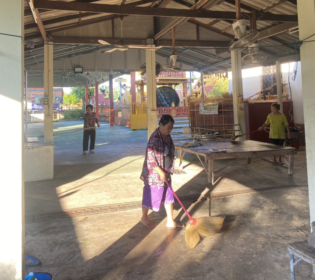 7. กลุ่มสตรีชุมชนบ้านแม่กืย  ทำความสะอาดวัดและศาลาอเนกประสงค์