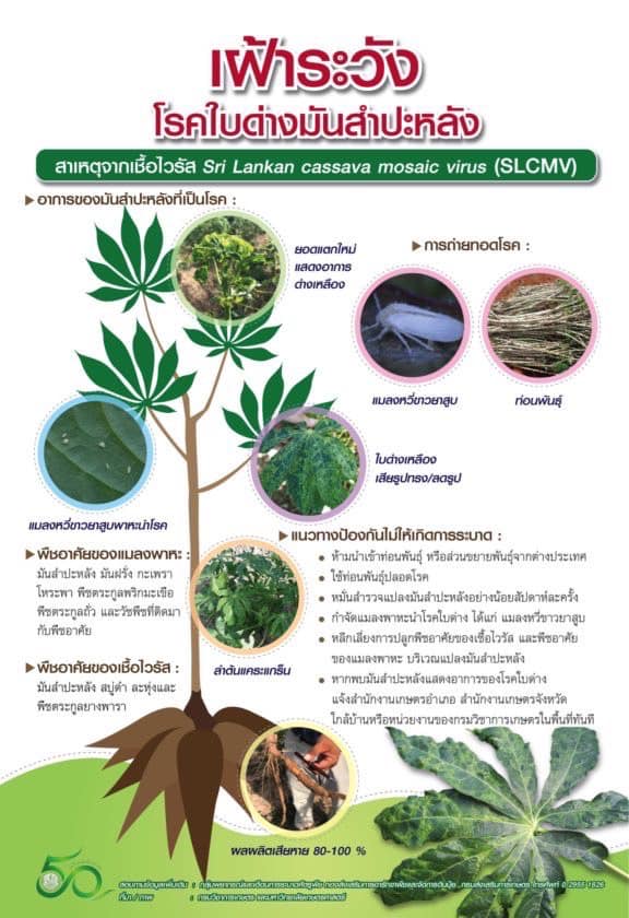 10) วันที่ 24 ธันวาคม พ.ศ. 2568 ได้เผยแพร่ข้อมูลด้านการเกษตร เรื่อง เฝ้าระวังโรคใบด่างมันสำปะหลัง
