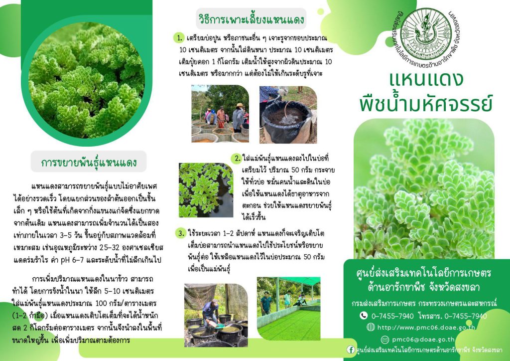5) วันที่ 17 ธันวาคม พ.ศ. 2568 ได้เผยแพร่ข้อมูลด้านการเกษตร เรื่อง แหนแดงพืชน้ำมหัศจรรย์