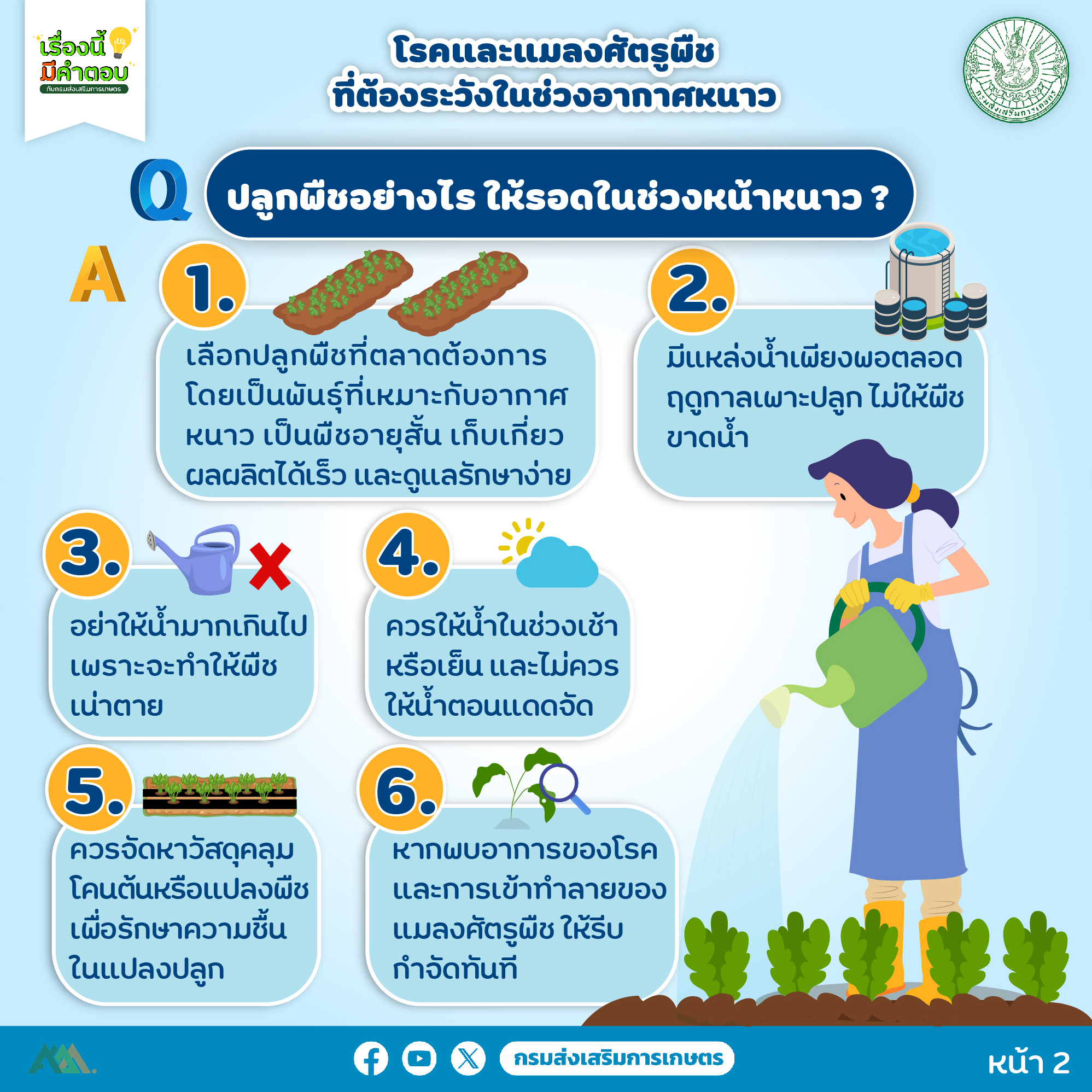 4) วันที่ วันที่ 16 ธันวาคม พ.ศ. 2568 ได้เผยแพร่ข้อมูลด้านการเกษตร เรื่อง โรคและแมลงศัตรูพืชที่ต้องระวังในช่วงอากาศหนาว