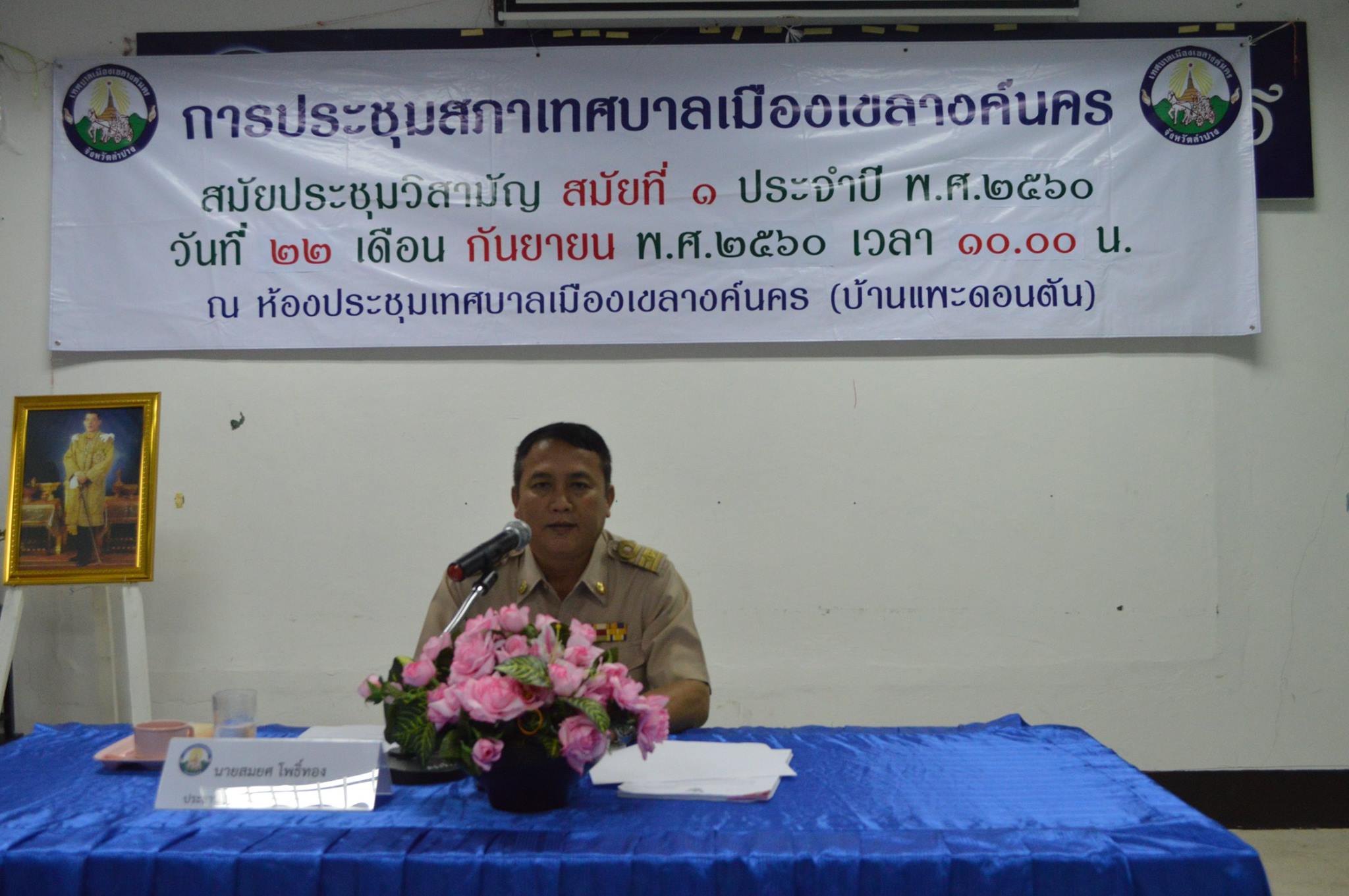 เมื่อวันที่ 22 กันยายน 2560 เวลา 10.00 น. เทศบาลเมืองเขลางค์นคร จัดการประชุมสภาเทศบาลเมืองเขลางค์นคร สมัยประชุมวิสามัญ สมัยที่ 1 ประจำปี พ.ศ.2560 ณ ห้องประชุมเทศบาลเมืองเขลางค์นคร (บริเวณโรงเรียนบ้านดอนตันเดิม)โดยมีนายสมยศ โพธิ์ทอง ประธานสภาเทศบาลเมืองเขลางค์นคร เป็นประธานในการประชุม และสมาชิกสภาเทศบาลเมืองเขลางค์นครเข้าประชุม 15 ท่าน นอกจากนี้ยังมีคณะผู้บริหาร หัวหน้าส่วนราชการ เข้าร่วมประชุมโดยได้มีการยืนไว้อาลัย ต่อการจากไปของนายไพบูลย์ โพธิ์ทอง อดีตสมาชิกสภาเทศบาลเมือง เขลางค์นคร เขต 2 ตำบลชมพู นอกจากนี้ในที่ประชุมสภาเทศบาลเมืองเขลางค์นคร สมาชิกสภาเทศบาลได้ซักถามถึงการดำเนินโครงการต่าง ๆ ของเทศบาลเมืองเขลางค์นคร และสอบถามถึงความคืบหน้ากรณีโครงการก่อสร้างอาคารสำนักงานเทศบาลเมืองเขลางค์นครแห่งใหม่ด้วย