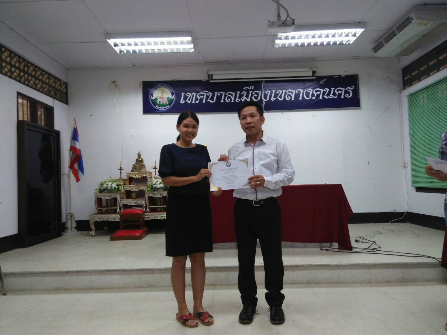 บรรยากาศการจัดโครงการอบรมเชิงปฎิบัติการวิจัยชั้นเรียนปฐมวัย นายไพฑูรย์ โพธิ์ทอง นายกเทศมนตรีเมืองเขลางค์นคร ได้มอบหมายให้ นายประดิษฐ์ เสริมสุข รองนายกเทศมนตรีเมืองเขลางค์นคร เป็นประธานมอบเกียรติบัตรให้กับผู้เข้ารับการอบรม ณ ห้องประชุมเทศบาลเมืองเขลางค์นคร ระหว่างวันที่ 4 – 5 พฤศจิกายน 2560 โครงการอบรมในครั้งนี้เพื่อให้ครู ผู้ดูแลเด็ก ในสังกัดเทศบาลทั้ง 12 ศูนย์ นำไปพัฒนาองค์ความรู้ ความเข้าใจเรื่องวิจัยชั้นเรียน เพื่อการจัดทำนวัตกรรม สื่อการจัดประสบการณ์เรียนรู้จากการวิจัยชั้นเรียนให้แก่ครู และผู้ดูแลเด็ก