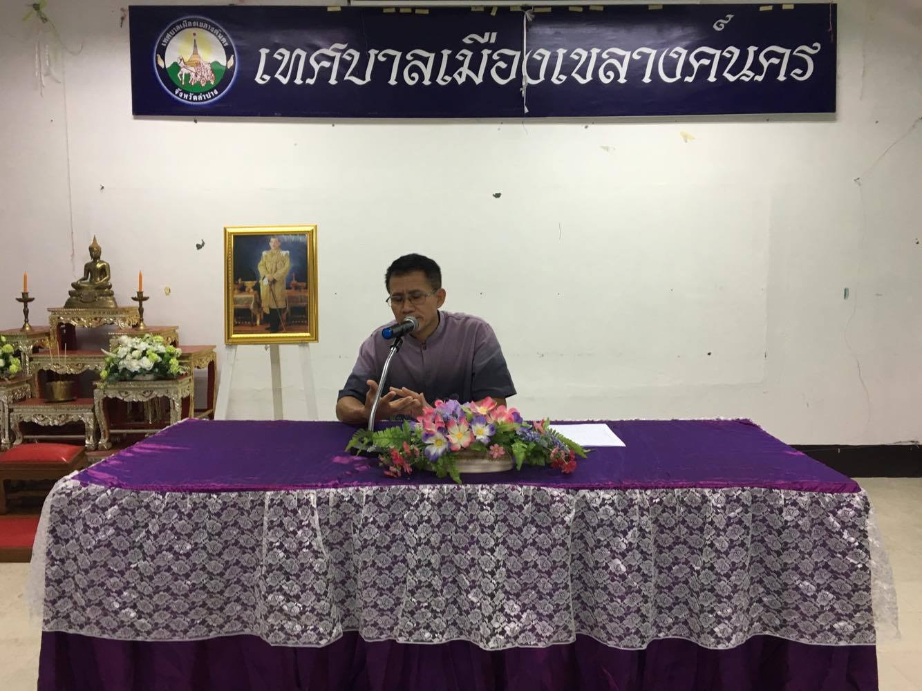 เมื่อวันที่ 16 พฤศจิกายน 2560 เวลา 15.00 น. ณ ห้องประชุมเทศบาลเมืองเขลางค์นคร บริเวณโรงเรียนดอนตัน (เดิม) หมู่ที่ 9 ตำบลชมพู อำเภอเมือง จังหวัดลำปาง นายประสงค์ เรือนสอน รองปลัดเทศบาลเมืองเขลางค์นคร เป็นประธานในการเปิดประชุมซักซ้อมเจ้าหน้าที่เทศบาลเมืองเขลางค์นคร จำนวน 31 ชุด ในการออกประชาคมการจัดทำแผนชุมชน