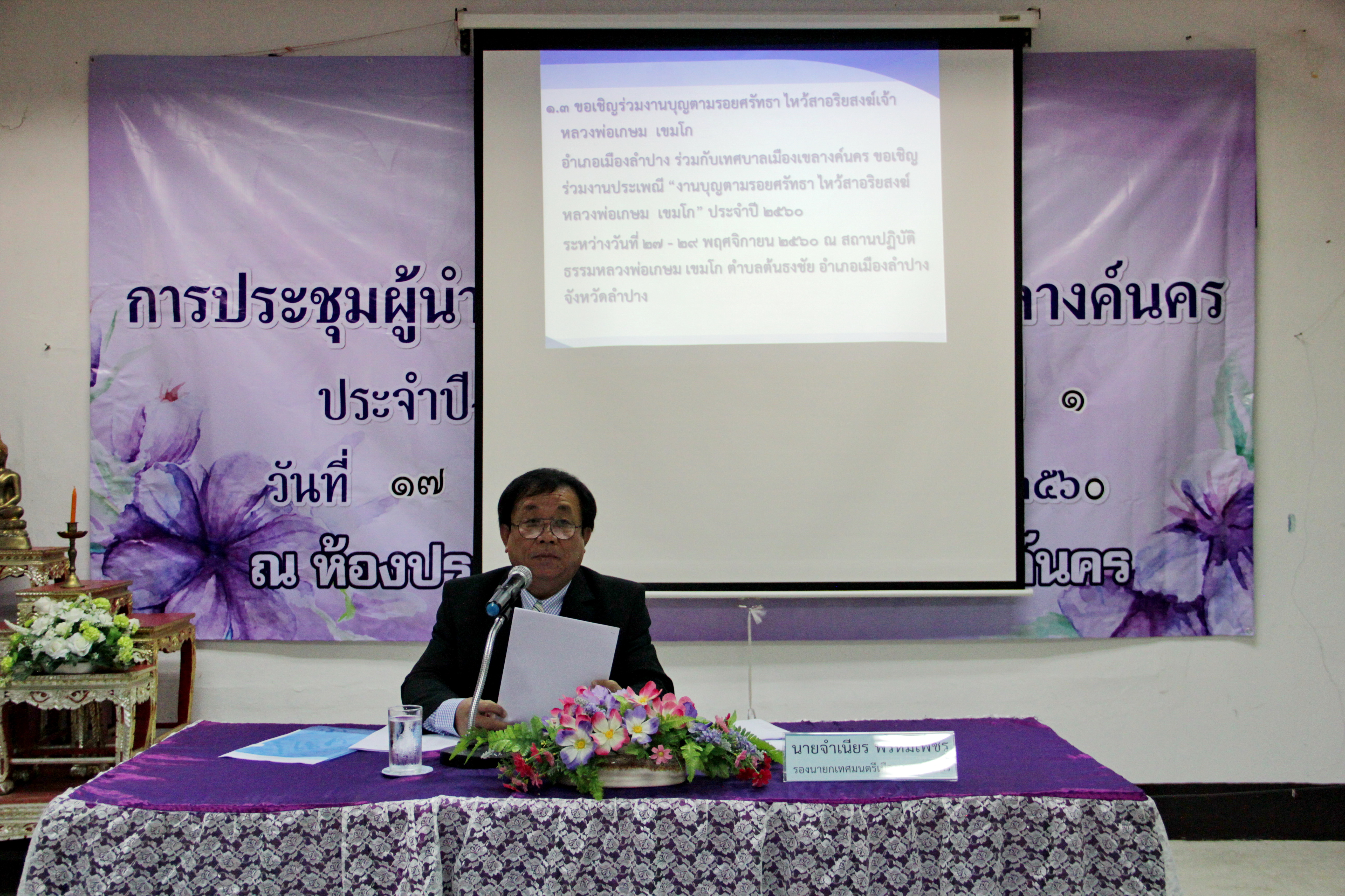 การประชุมผู้นำชุมชนเทศบาลเมืองเขลางค์นคร ประจำปีงบประมาณ 2561 ครั้งที่ 1