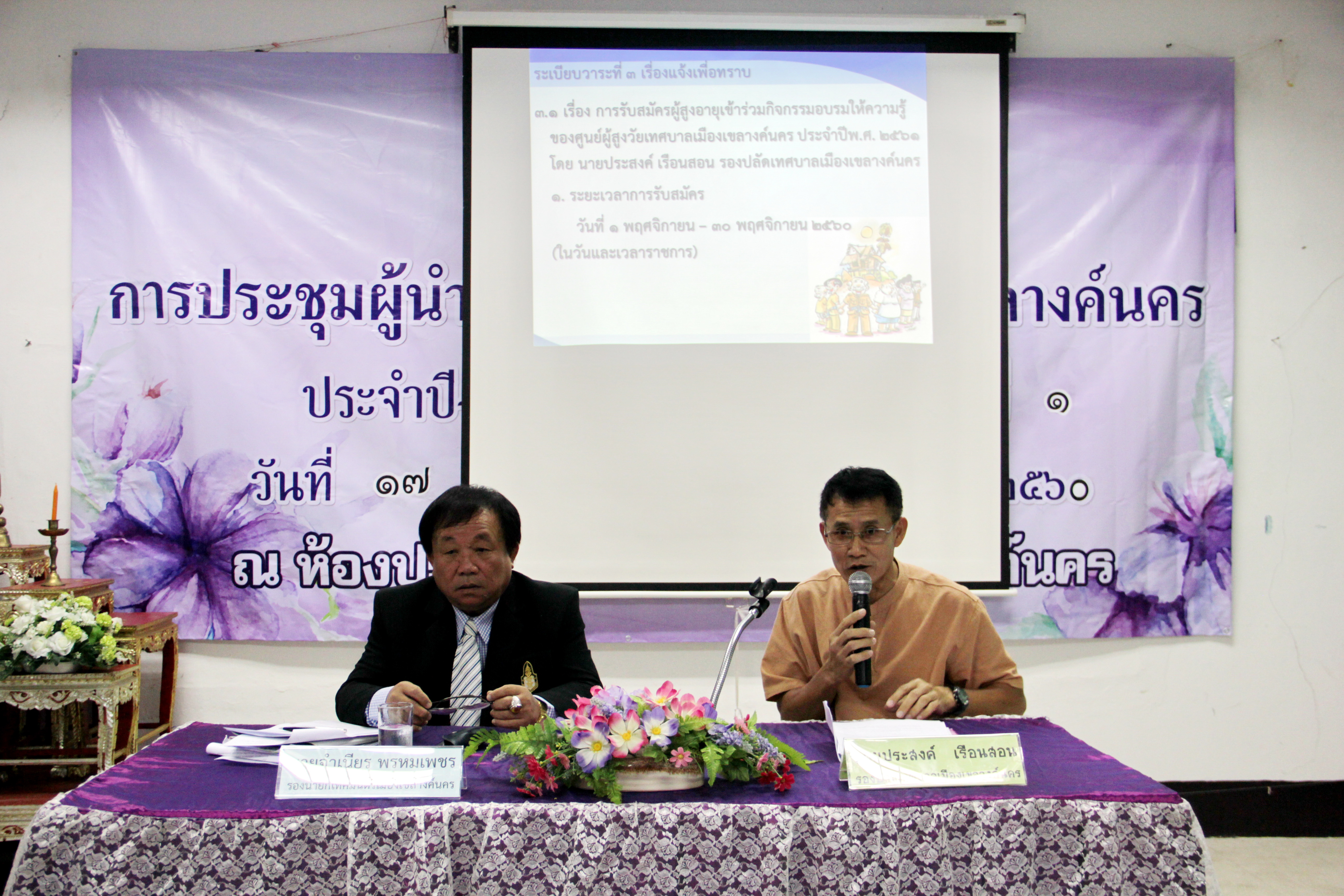 วันที่ 17 พฤศจิกายน 2560 เวลา 09.00 น. ณ ห้องประชุมเทศบาลเมืองเขลางค์นคร โรงเรียนบ้านดอนตัน(เดิม) นายไพฑูรย์ โพธิ์ทอง นายกเทศมนตรีเมืองเขลางค์นคร มอบหมายให้นายจำเนียร พรหมเพชร รองนายกเทศมนตรีเมืองเขลางค์นคร เป็นประธานในการประชุมผู้นำชุมชน ครั้งที่ 1/2561 โดยมีคณะผู้บริหาร สมาชิกสภาเทศบาล หัวหน้าส่วนราชการ เเละประธานชุมชน เข้าร่วมการประชุม ทั้งนี้ที่ประชุมมีการแลกเปลี่ยนความคิดเห็นในเรื่องต่างๆระหว่างเทศบาลเมืองเขลางค์นครกับชุมชน เพื่อเป็นประโยชน์ต่อประชาชนในพื้นที่เทศบาลเมืองเขลางค์นคร