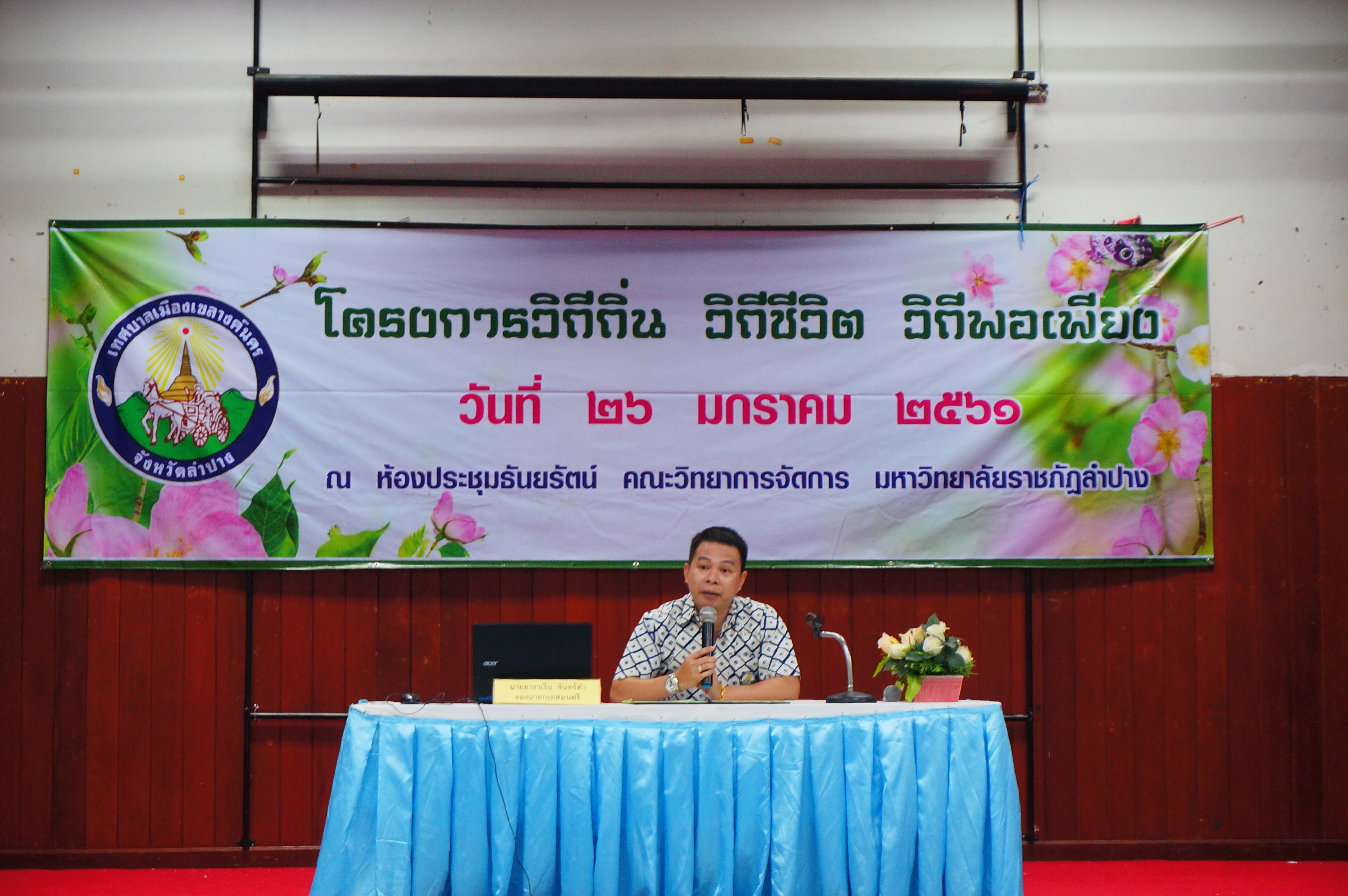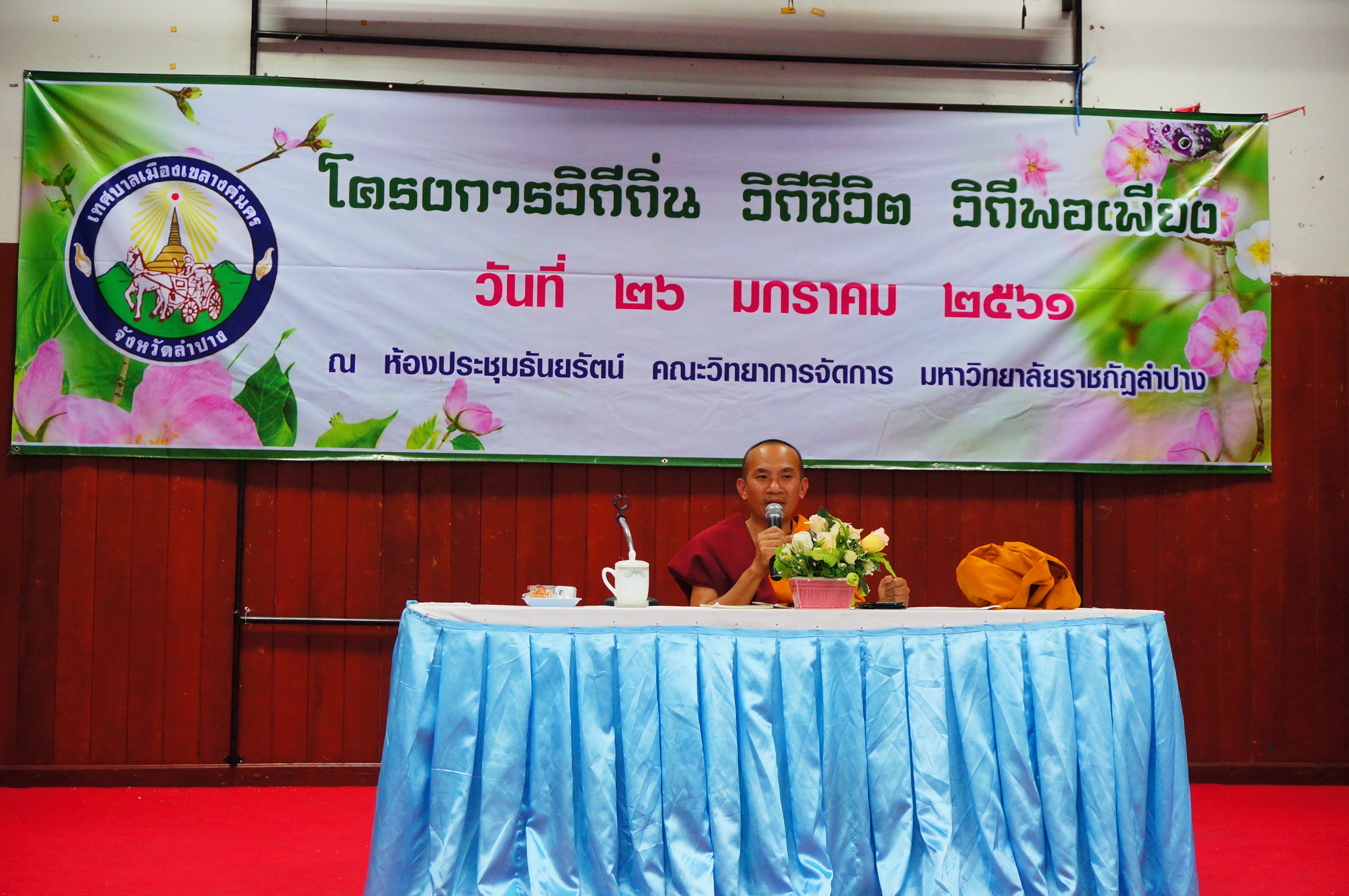 วันที่ 26 มกราคม 2561 นายไพฑูรย์ โพธิ์ทอง นายกเทศมนตรีเมืองเขลางค์นคร ได้มอบหมายให้นายธาราเงิน จันทร์คำ รองนายกเทศมนตรีเมืองเขลางค์นครเป็นประธานในพิธีเปิด โครงการวิถีถิ่น วิถีชีวิต วิถีพอเพียง โดยมีคณะผู้บริหาร สมาชิกสภาเทศบาล และหัวหน้าส่วนราชการร่วมเป็นเกียรติในพิธีเปิด และได้รับเกียรติจากอาจารย์ประดิษฐ์ สรรพช่าง รองประธานสภาวัฒนธรรมจังหวัดลำปาง และพระมหากีรติ วรกิตติ อาจารย์ประจำมหาวิทยาลัยมหาจุฬาลงกรณ์ราชวิทยาลัย วิทยาลัยสงฆ์นครลำปาง ร่วมบรรยายให้ความรู้แก่คณะกรรมการพัฒนาสตรีเทศบาล และคณะกรรมการพัฒนาสตรีชุมชน ณ ห้องประชุมธันยรัตน์ ชั้น 8 คณะวิทยาการจัดการ มหาวิทยาลัยราชภัฏลำปาง
