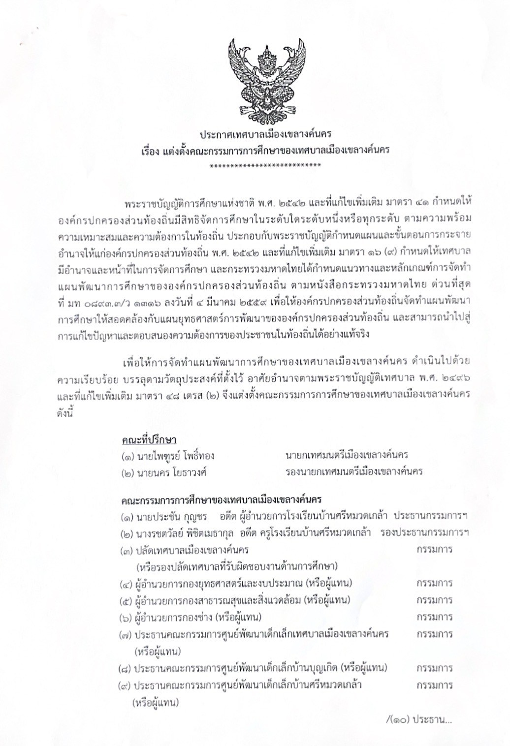 ประกาศเทศบาลเมืองเขลางค์นครเรื่องแต่งตั้งคณะกรรมการการศึกษาของเทศบาลเมืองเขลางค์นคร Share FacebookTwitterGoogle+ReddItWhatsAppPinterestEmail