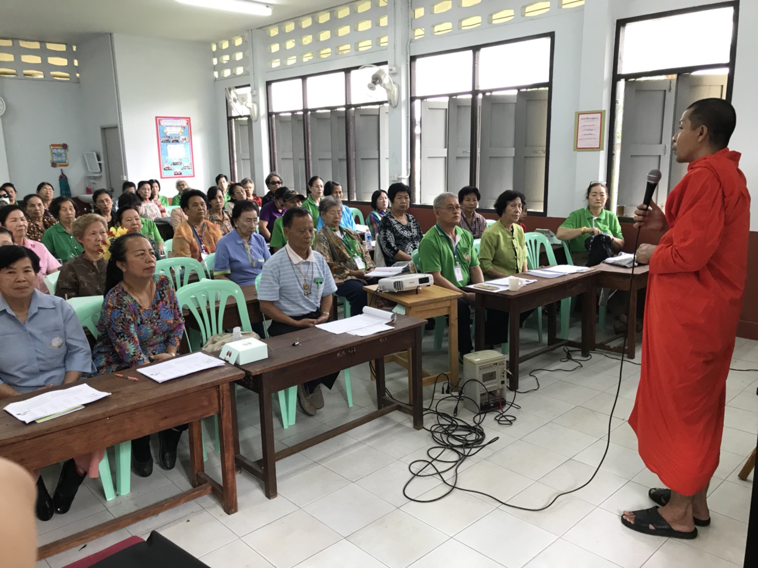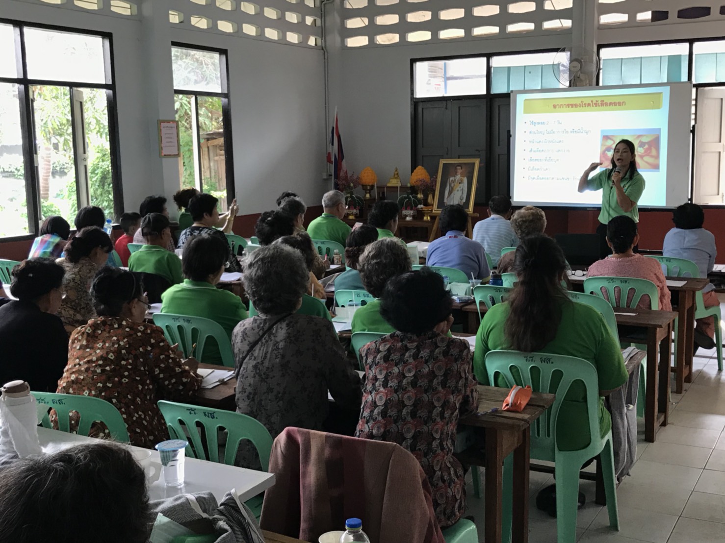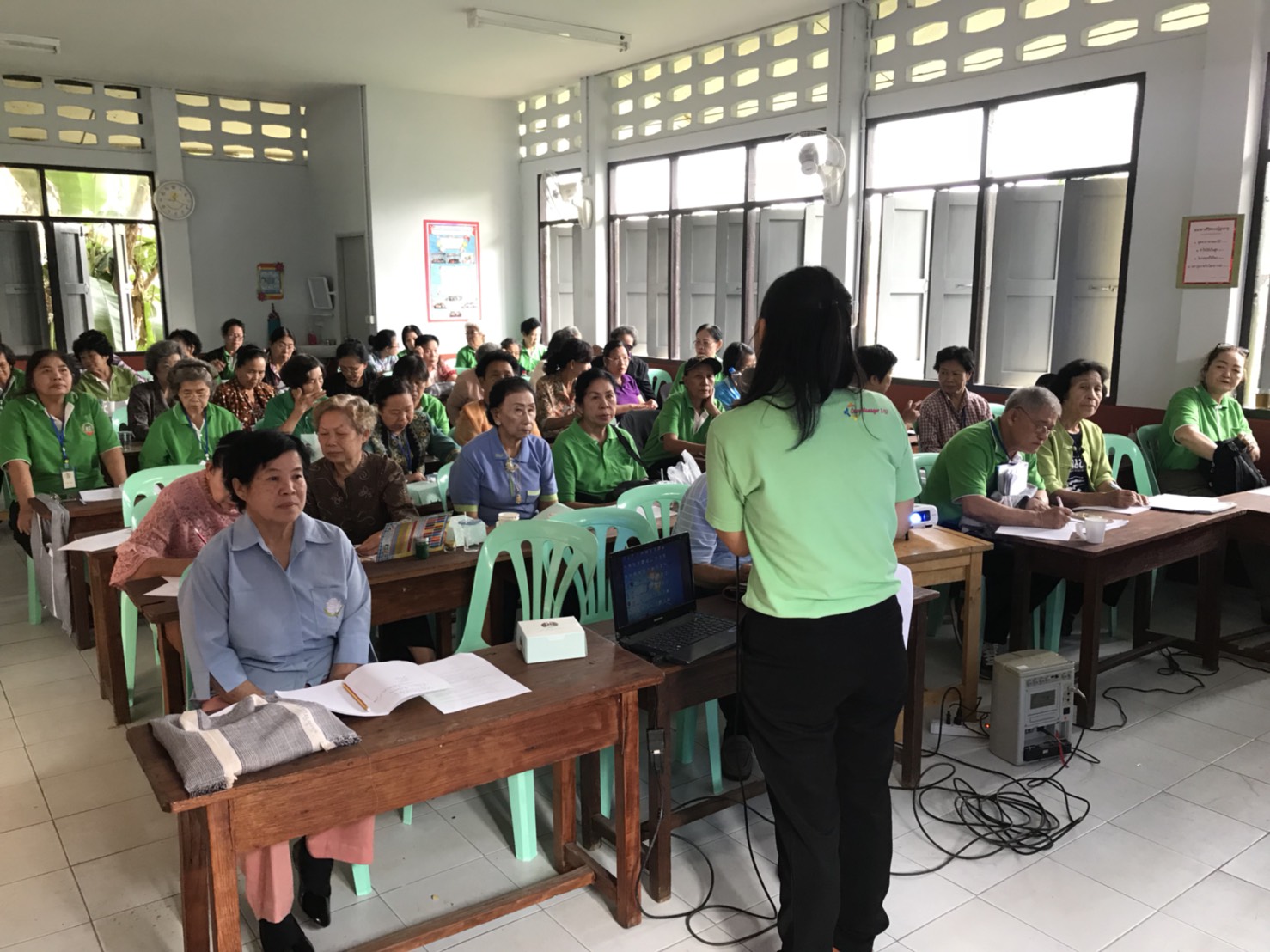 กิจกรรมการอบรมให้ความรู้แก่ผู้สูงอายุ ชั้นปีที่ ๒ หลักสูตรผู้ชำนาญการชีวิต ตามโครงการศูนย์ผู้สูงวัยเทศบาลเมืองเขลางค์นคร ประจำปีงบประมาณ ๒๕๖๑ ในวันที่ ๑๔ มีนาคม ๒๕๖๑ ณ ศูนย์ผู้สูงวัยตำบลชมพู ได้มีการอบรมให้ความรู้ เรื่อง การป้องกันโรคติดต่อ โรคติดเชื้อ, ธรรมภาคปฏิบัติ ๒ และการระงับอัคคีภัยเบื้องต้น