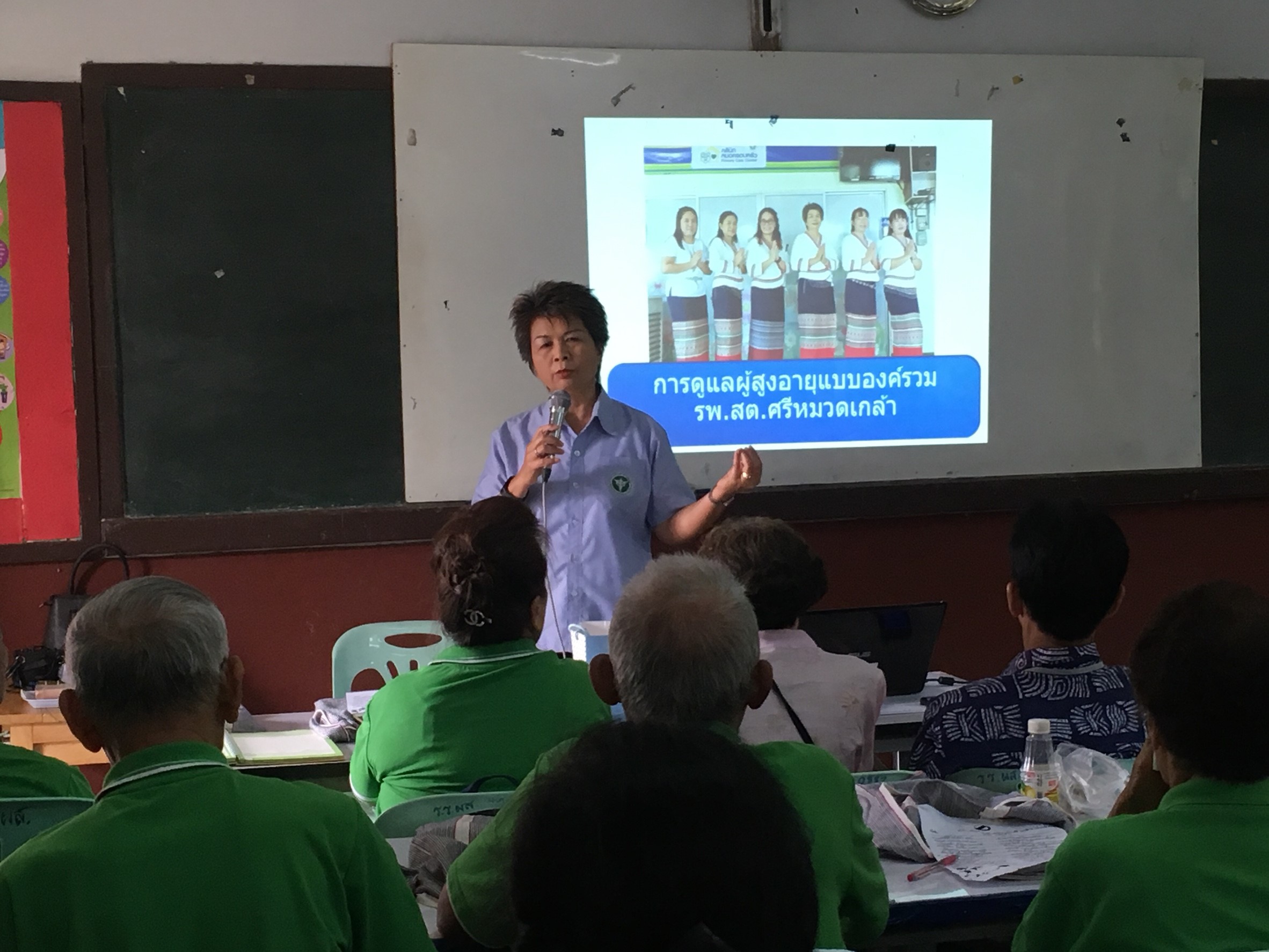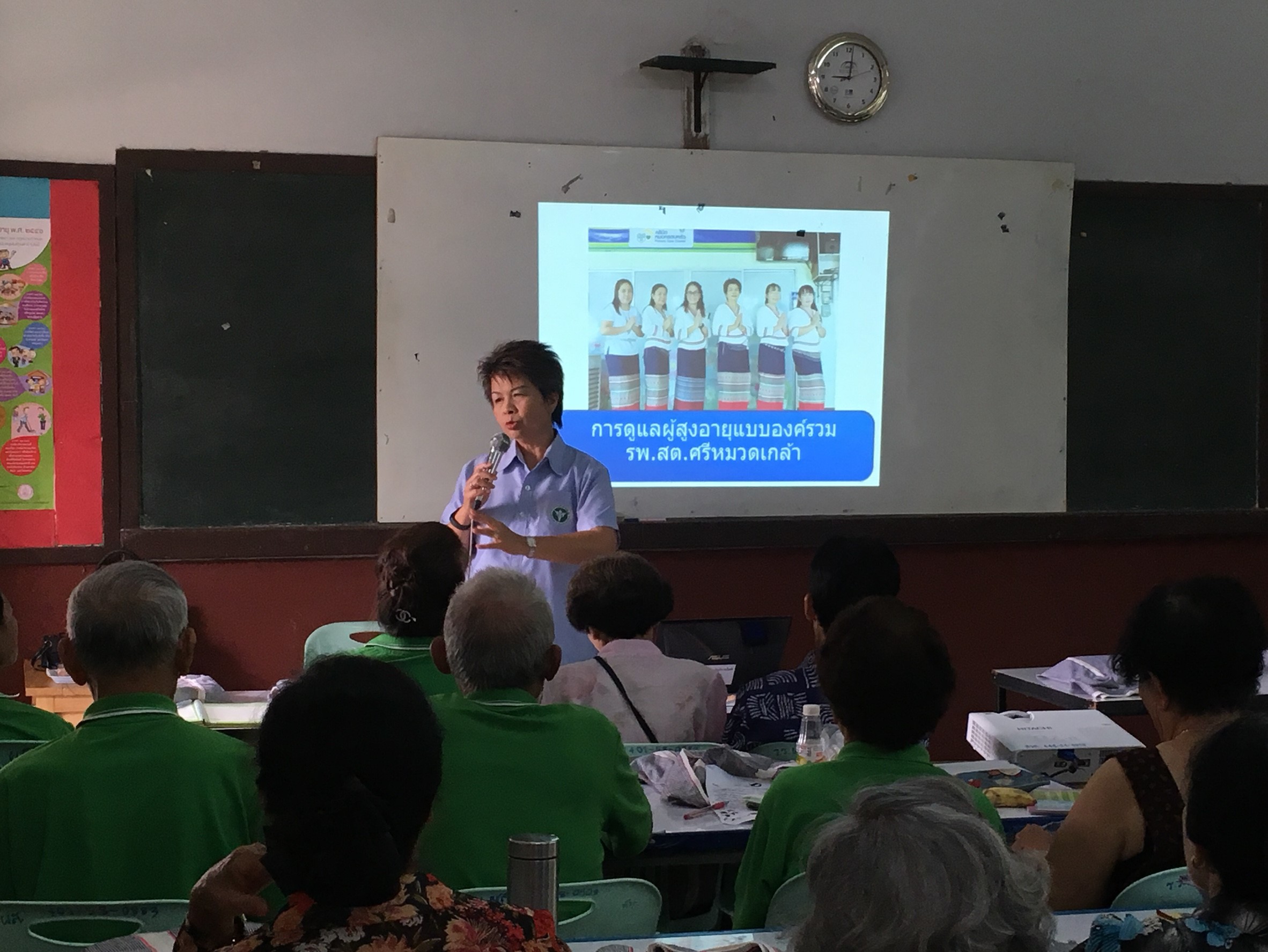 กิจกรรมการอบรมให้ความรู้แก่ผู้สูงอายุ ชั้นปีที่ ๓ หลักสูตรผู้เชี่ยวชาญชีวิต ตามโครงการศูนย์ผู้สูงวัยเทศบาลเมืองเขลางค์นคร ประจำปีงบประมาณ ๒๕๖๑ ในวันที่ ๒๘ มีนาคม ๒๕๖๑ ณ ศูนย์ผู้สูงวัยตำบลชมพู ได้มีการอบรมให้ความรู้ เรื่อง การดูแลผู้สูงอายุแบบองค์รวม