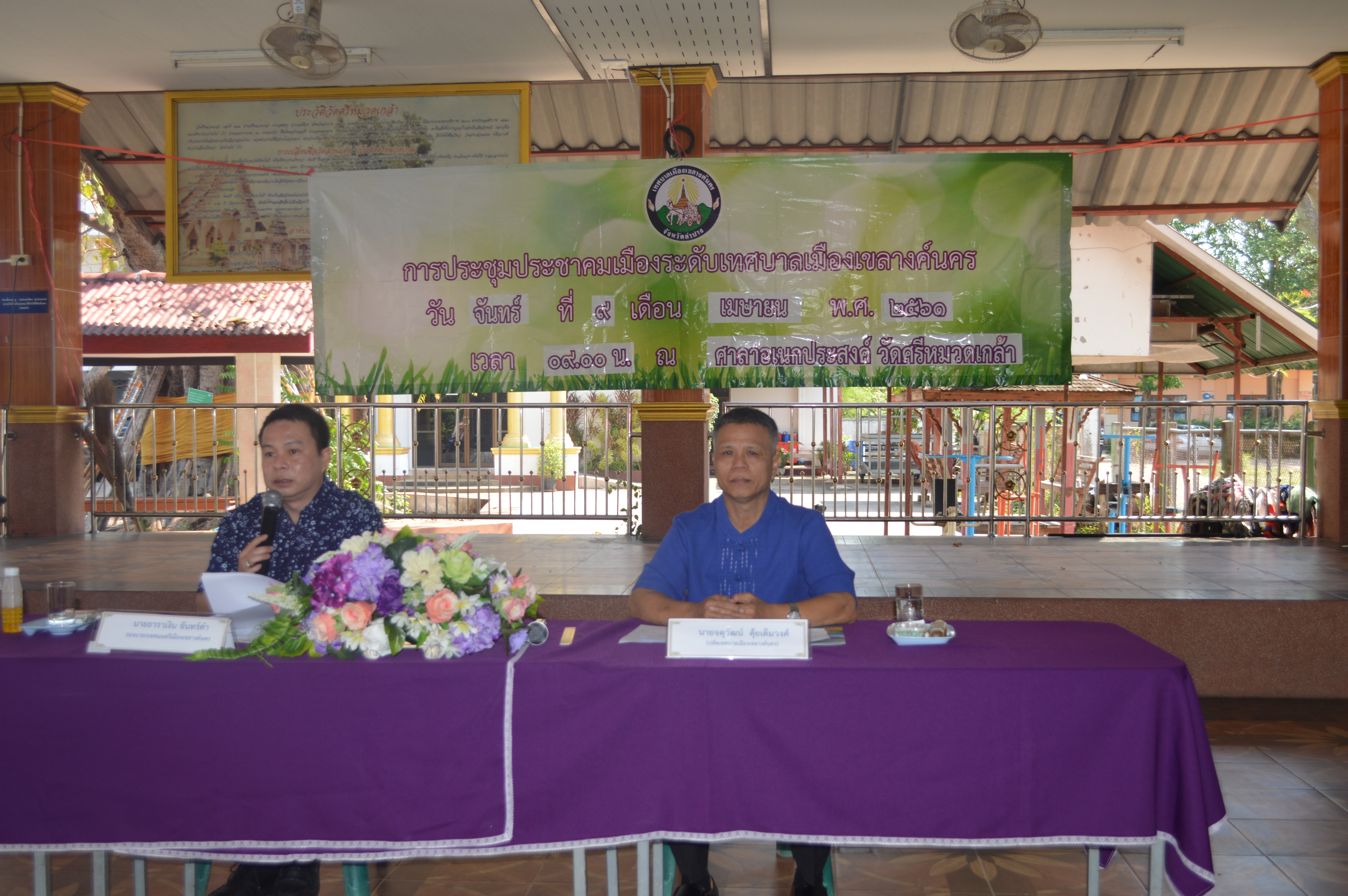 เมื่อวันที่ 9 เมษายน 2561 เวลา 09.00 น. นายไพฑูรย์ โพธิ์ทอง นายกเทศมนตรีเมืองเขลางค์นคร มอบหมายให้นายธาราเงิน จันทร์คำ รองนายกเทศมนตรีเมืองเขลางค์นครเป็นประธานในการประชุมประชาคมเมืองระดับเทศบาลเมืองเขลางค์นคร เพื่อพิจารณา ร่างแผนพัฒนาเทศบาลเมืองเขลางค์นครสี่ปี (พ.ศ. 2561 – 2564) ฉบับเพิ่มเติมครั้งที่ 3 โดยมีฟคณะผู้บริหาร สมาชิกสภาเทศบาล หัวหน้าส่วนราชการ พนักงานเทศบาล ประธานชุมชน คณะกรรมการชุมชน ผู้แทนภาครัฐ ภาคเอกชน ภาคประชาชน กลุ่มองค์กรต่างๆ ในเขตเทศบาลเมืองเขลางค์นคร เข้าร่วมการประชุม ณ ศาลาอเนกประสงค์ วัดศรีหมวดเกล้า ตำบลชมพู อำเภอเมือง จังหวัดลำปาง เพื่อร่วมกันพิจารณาเพิ่มเติมโครงการ ประกอบด้วย 1.โครงการจ้างที่ปรึกษาออกแบบก่อสร้างอาคารประกอบต่างๆ และปรับปรุงภูมิทัศน์ภายในบริเวณที่ดินสำหรับใช้ก่อสร้างอาคารสำนักงานเทศบาลเมืองเขลางค์นคร 2. โครงการพัฒนาเทศบาลเป็นองค์กรแห่งการเรียนรู้ โดยมีการเปลี่ยนแปลงโครงการ จำนวน 1 โครงการ ทั้งนี้ที่ประชุมมีมติเห็นชอบให้เพิ่มเติมเปลี่ยนแปลงโครงการตามี่ได้เสนอในเวทีประชาคมทุกโครงการ